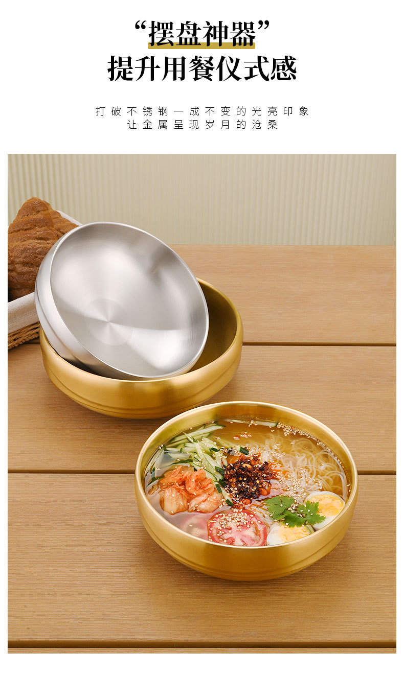 공장 직접 한국 더블 레이어 차가운 국수 그릇 황금 스테인리스 즉석 국수 그릇라면 그릇 밥 그릇 나사 분말 그릇