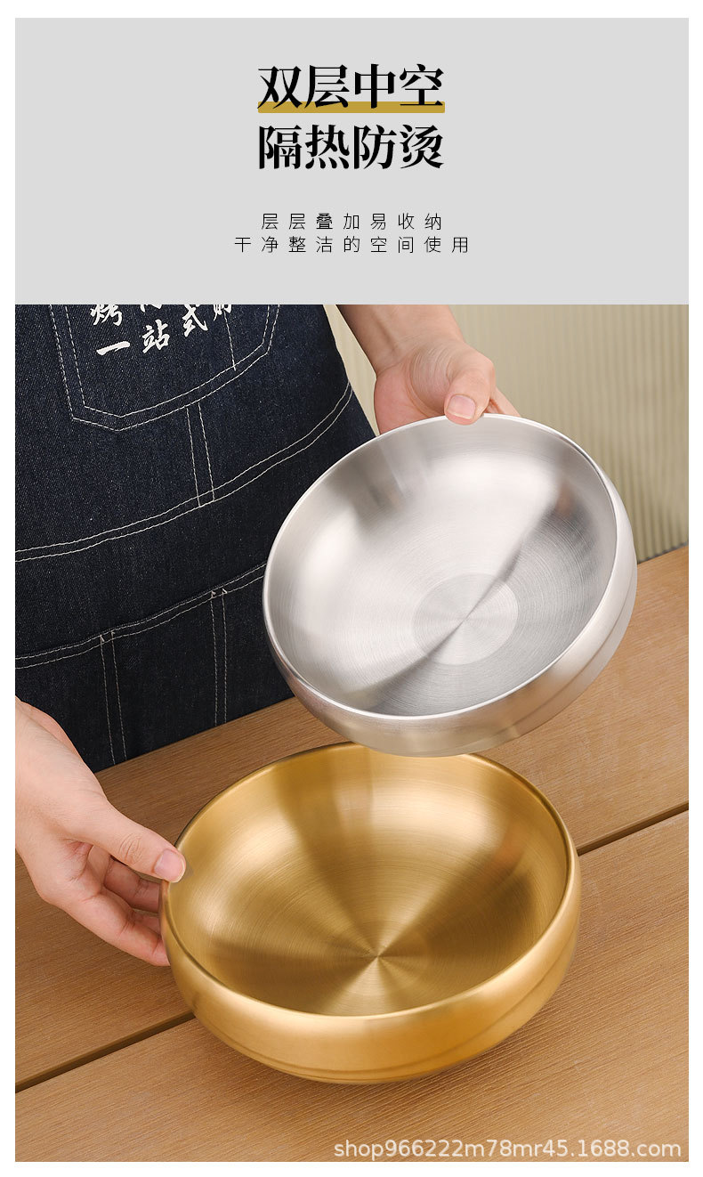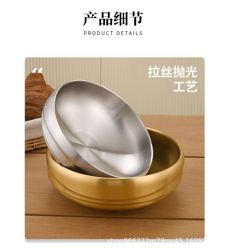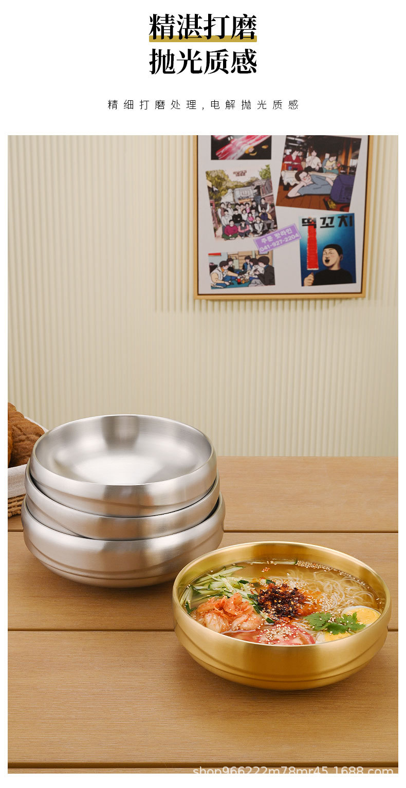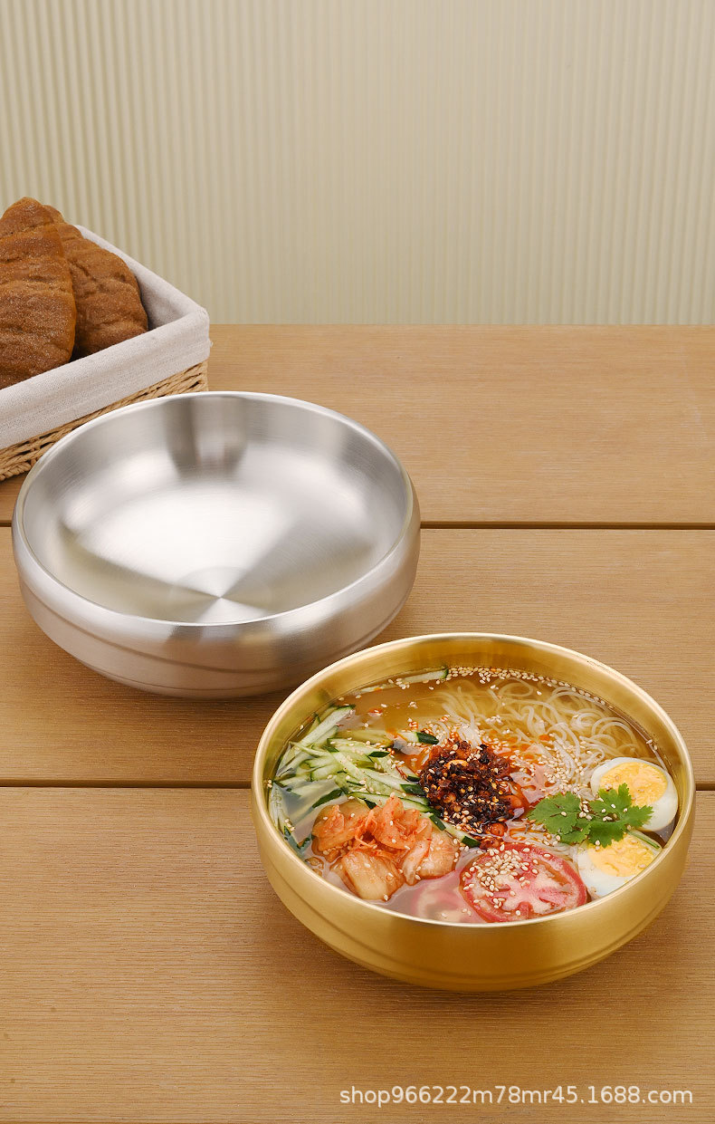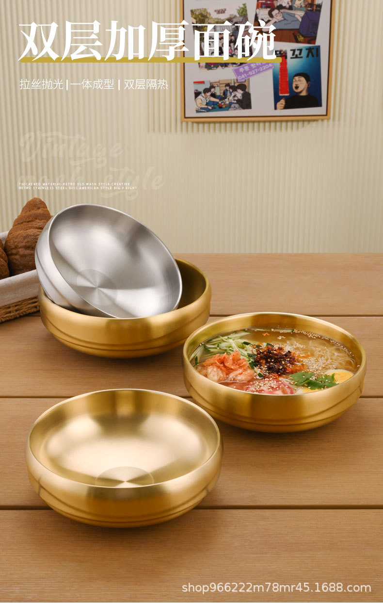 공장 직접 한국 더블 레이어 차가운 국수 그릇 황금 스테인리스 즉석 국수 그릇라면 그릇 밥 그릇 나사 분말 그릇스토어 가기
