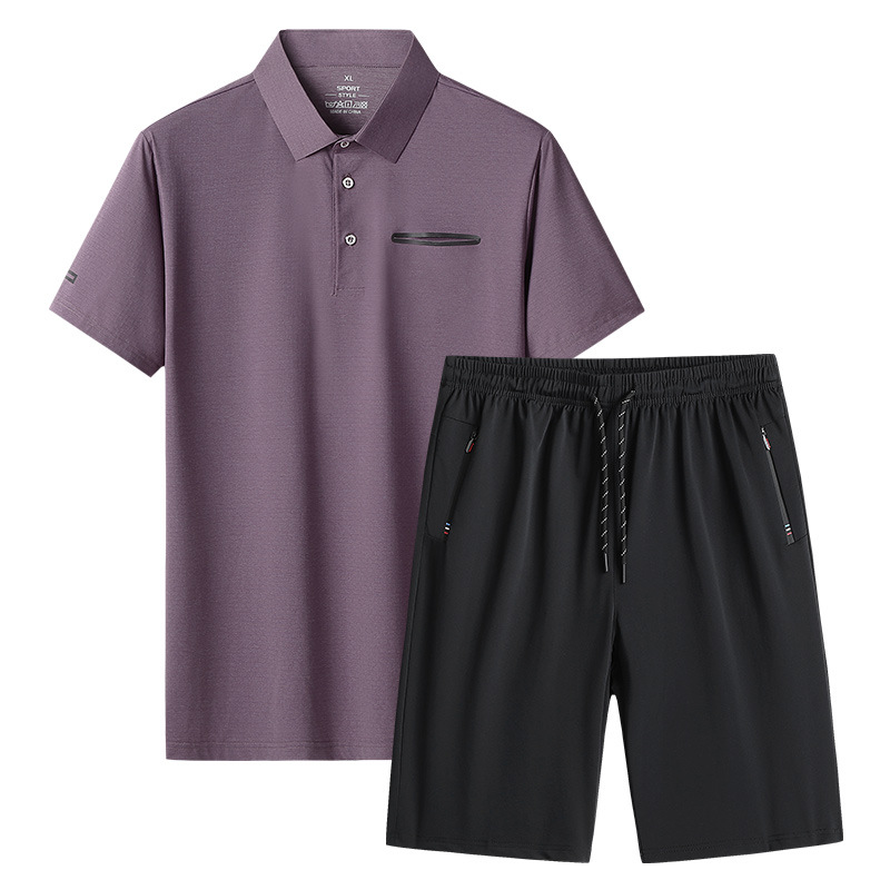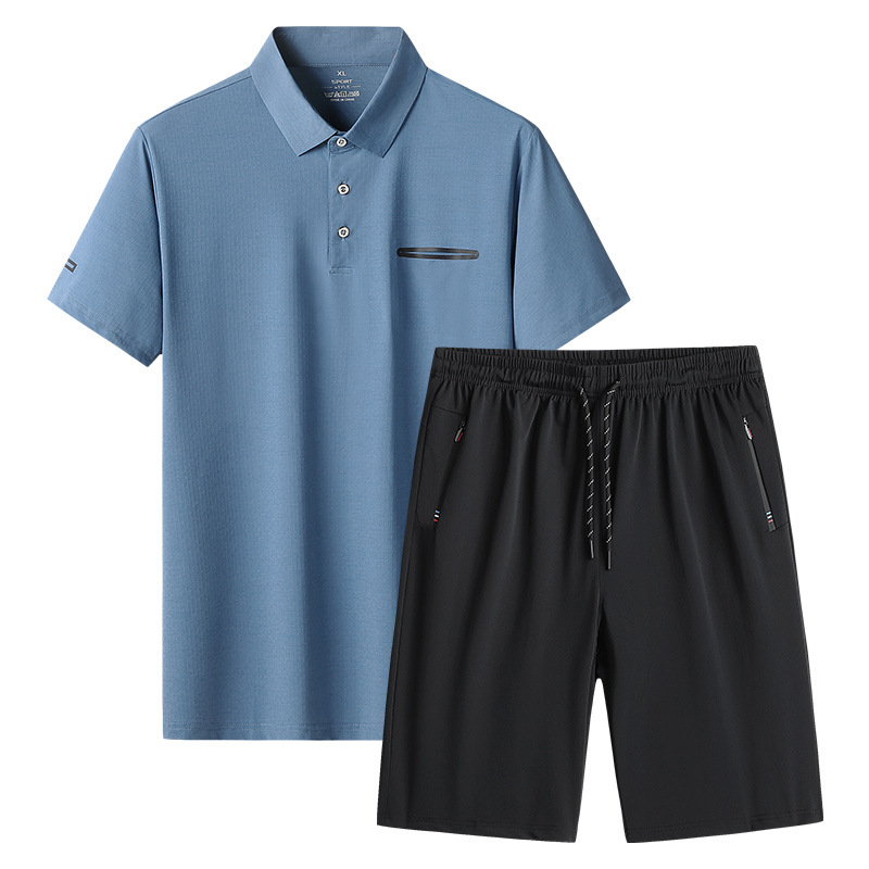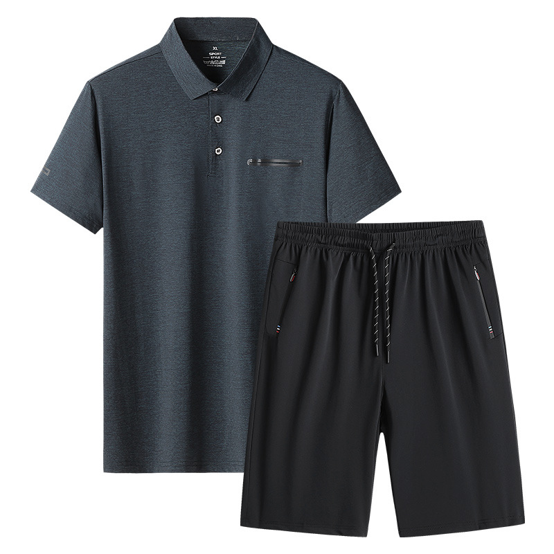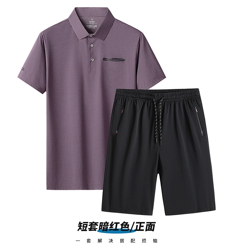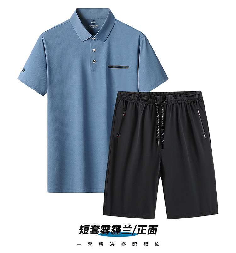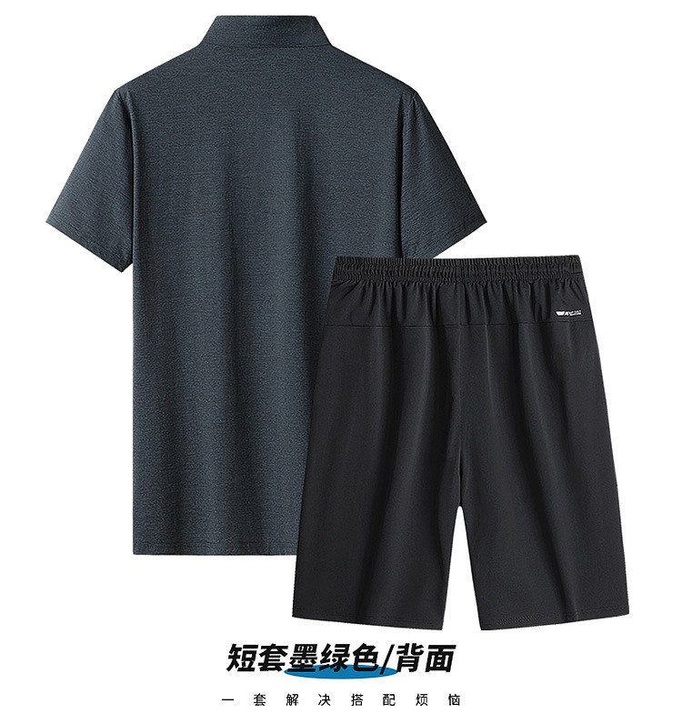 중년 및 노인 캐주얼 스포츠웨어 세트 남자 여름 반팔 반바지 아빠의 여름 아이스 실크 투피스 남자 폴로 셔츠