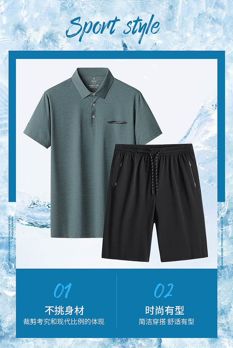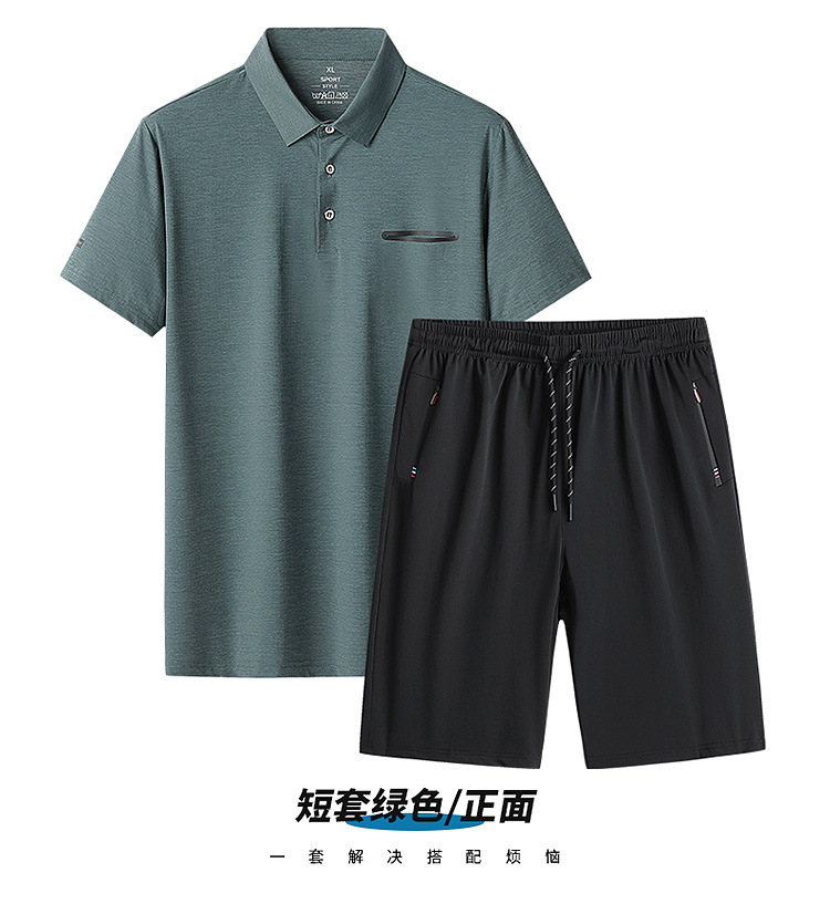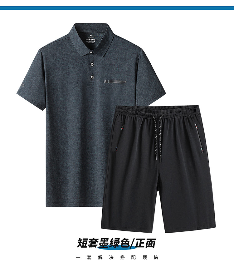 중년 및 노인 캐주얼 스포츠웨어 세트 남자 여름 반팔 반바지 아빠의 여름 아이스 실크 투피스 남자 폴로 셔츠스토어 가기
