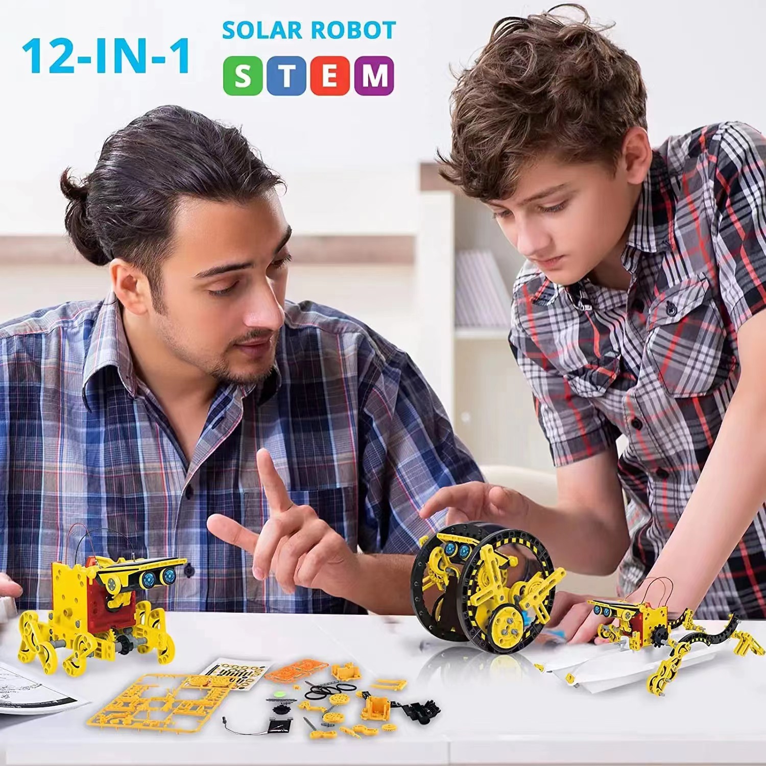 국경 간 뜨거운 판매 어린이 DIY 조립 12-in-1 태양열 로봇 과학 지능형 재미있는 장난감 퍼즐
