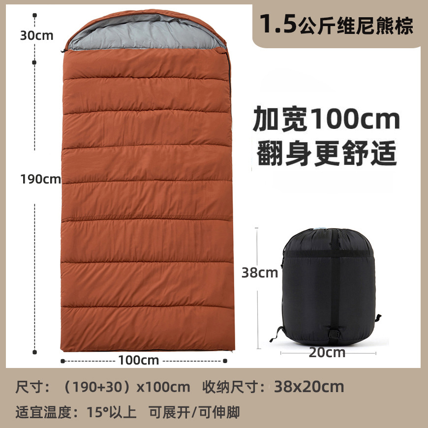 • 1.5kg 넓은 침낭 (100cm 너비)-푸우 다크 브라운 15 도 이상에 적합합니다.
