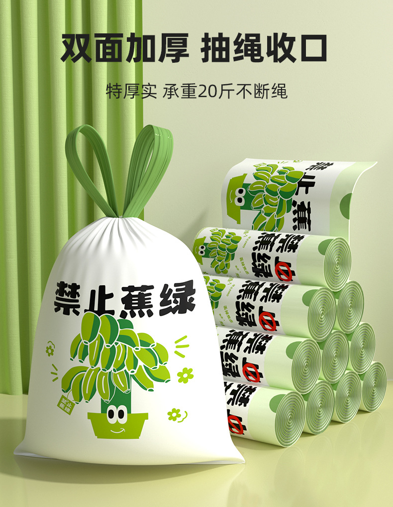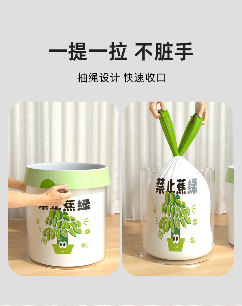 바나나 그린 드로우 스트링 쓰레기 봉투 가정용 대형 롤 휴대용 두꺼운 불안 거부 자체 폐쇄 쓰레기 봉투 대형스토어 가기