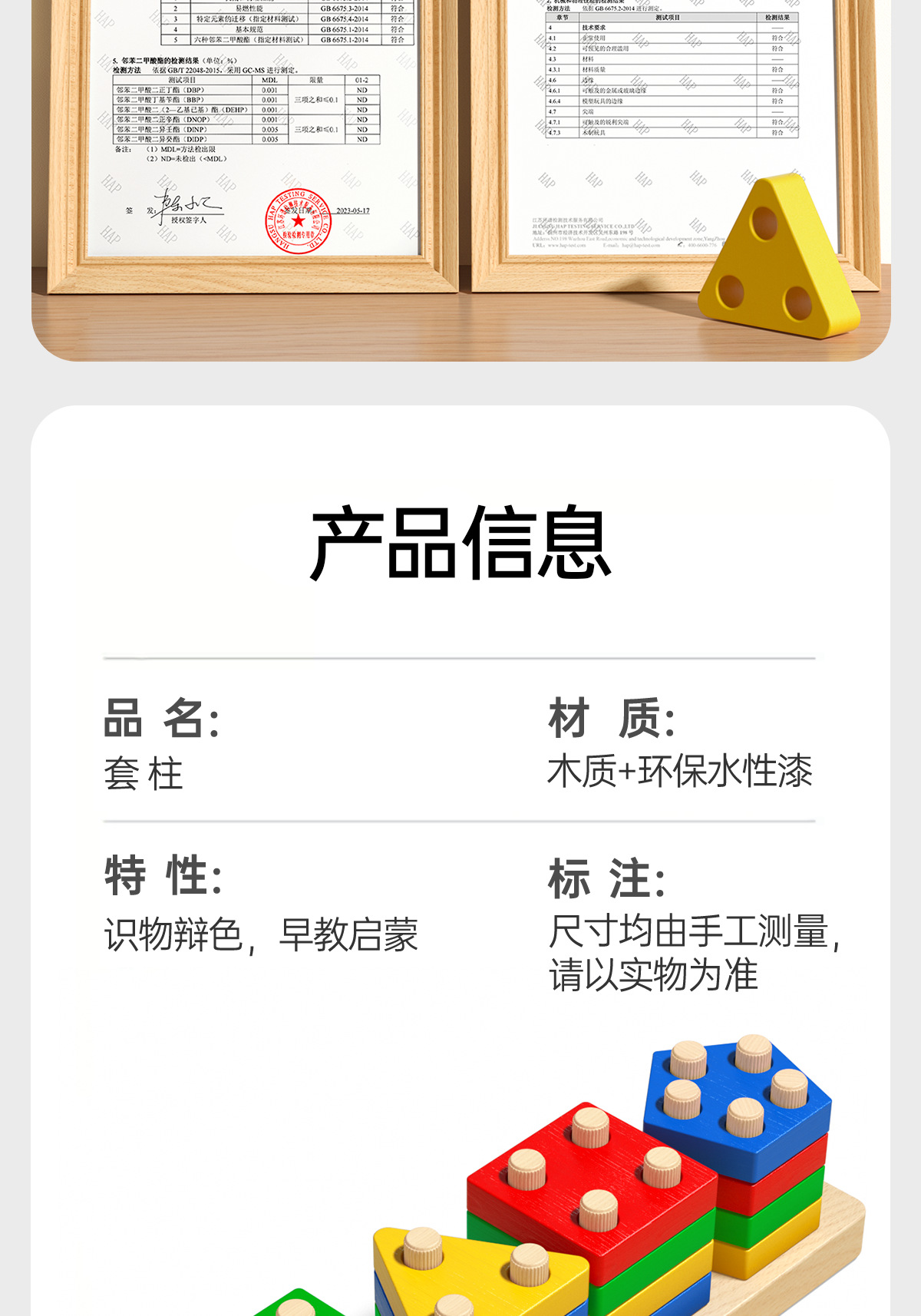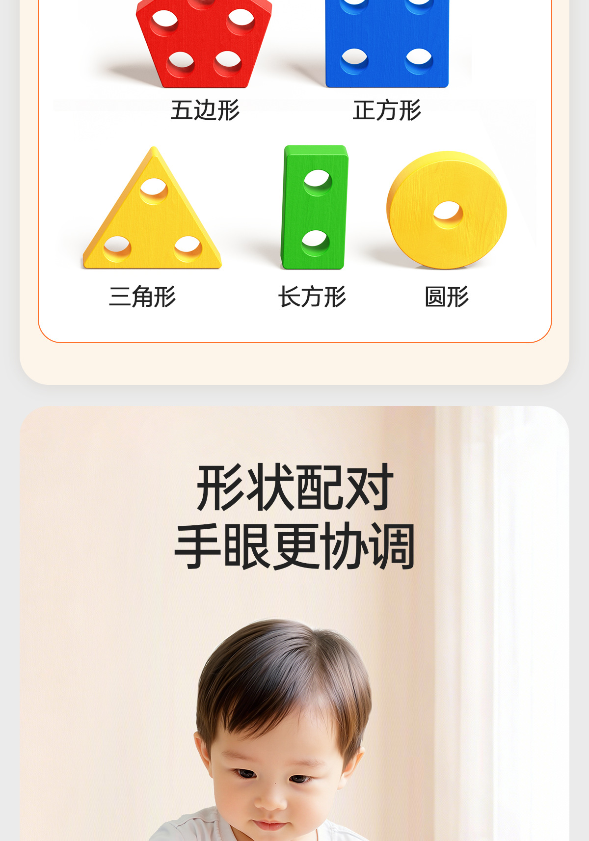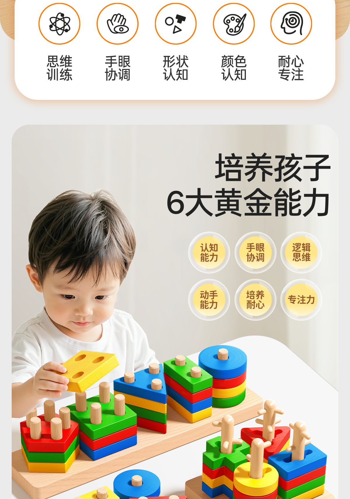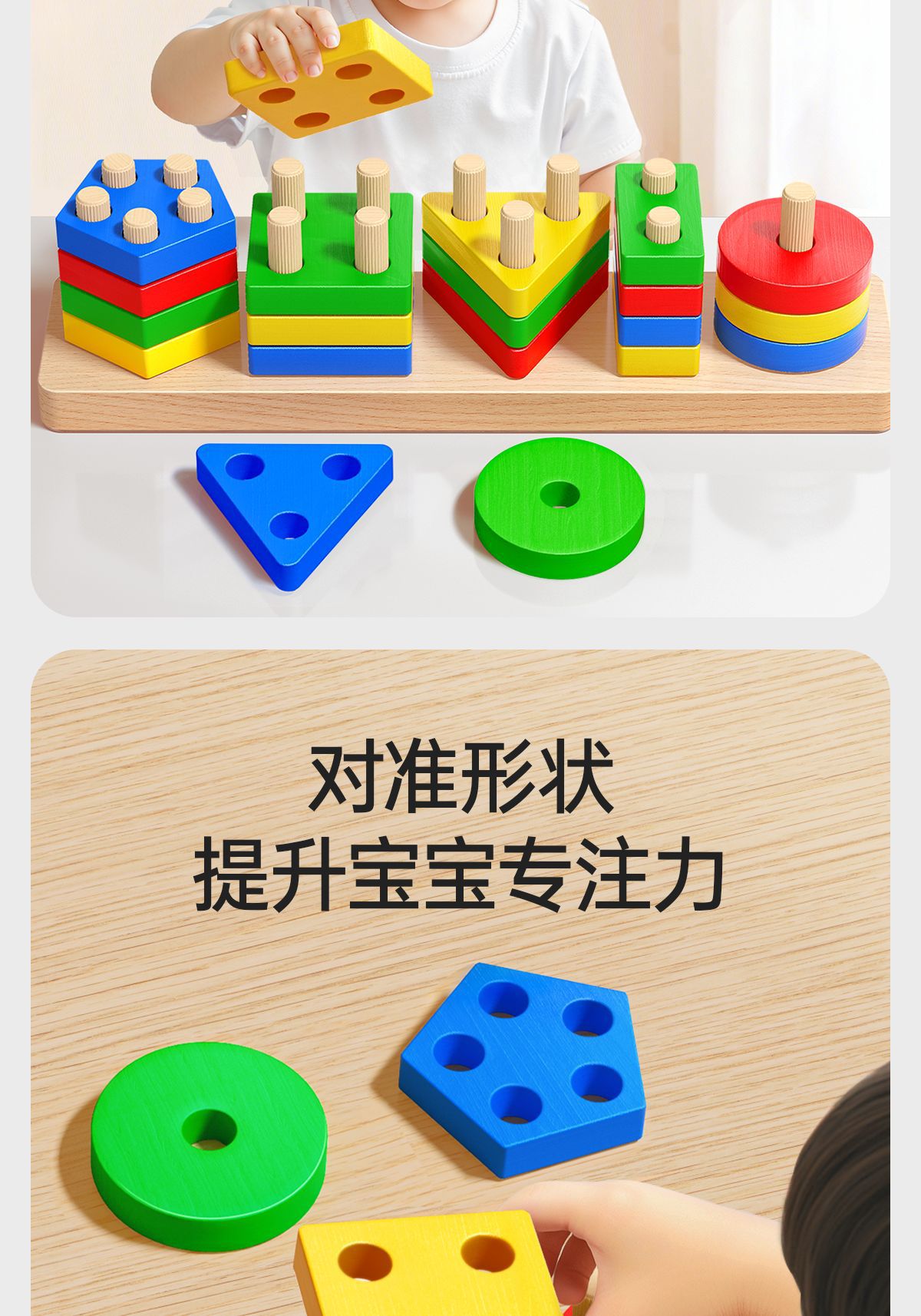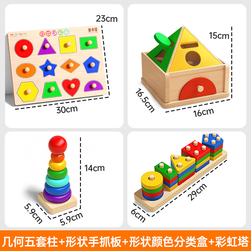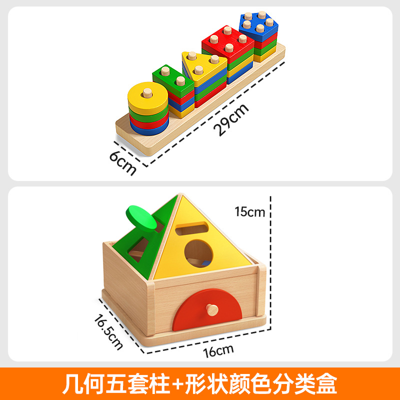 몬테소리 기하학적 기둥 세트 어린이 교육 조립 건물 블록 1 ~ 3 세 소년 소녀 아기 모양 일치하는 장난감스토어 가기