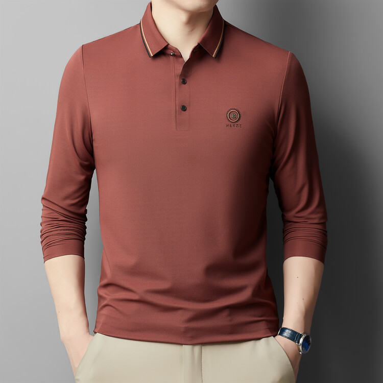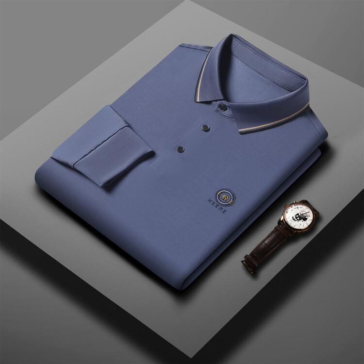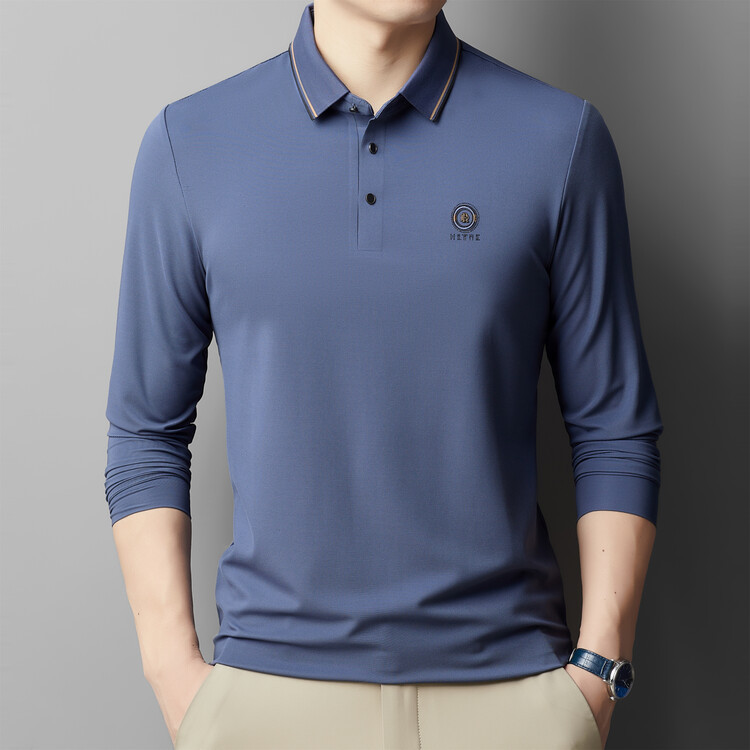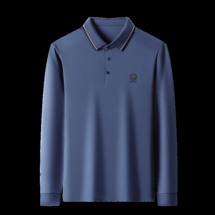 春秋季男士长袖t恤无痕翻领POLO衫男装轻奢商务刺绣休闲体恤衫