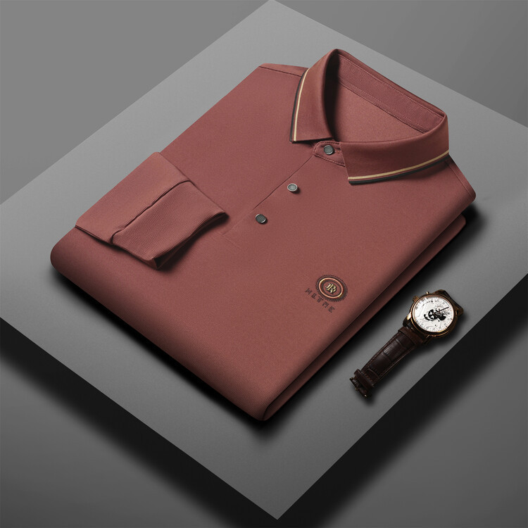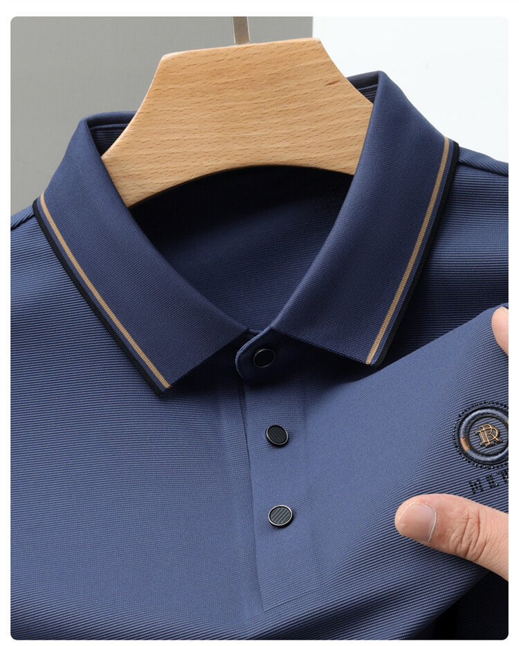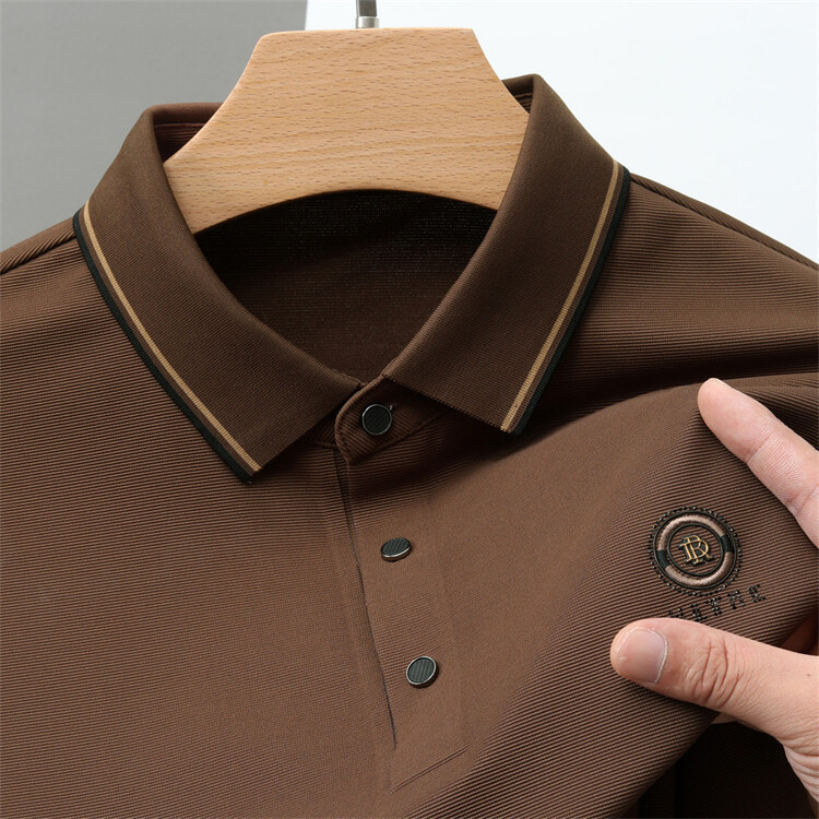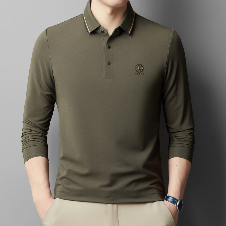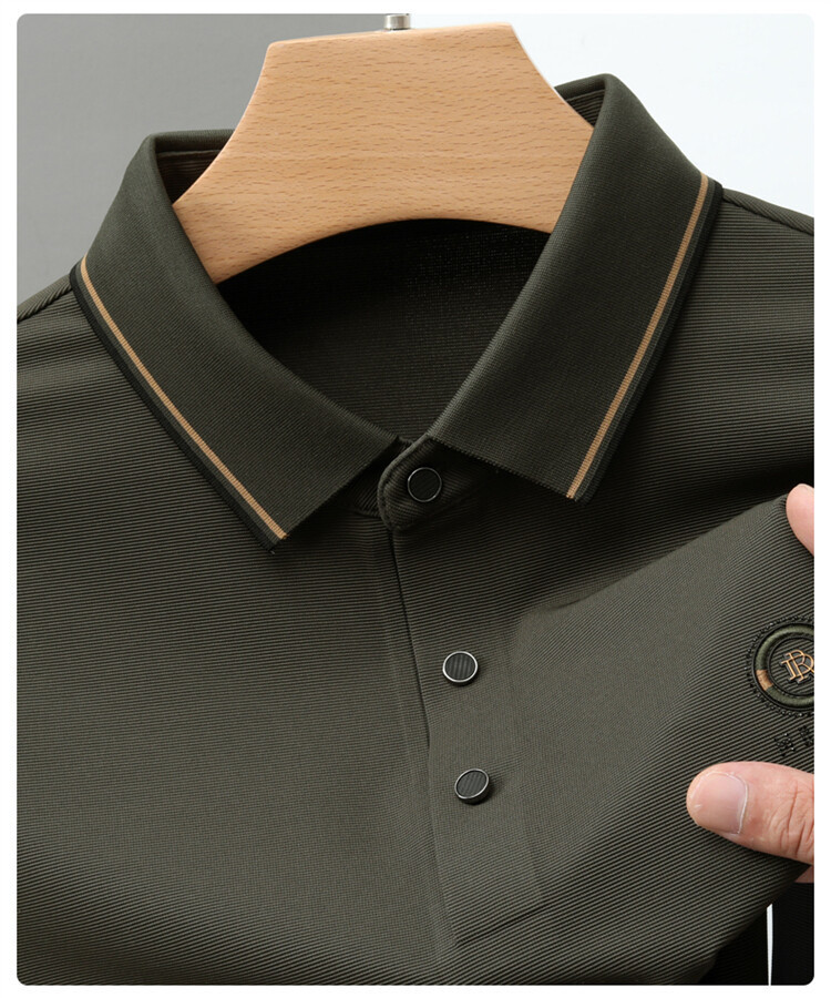 봄과 가을 남성용 긴팔 티셔츠 트레이스 라펠 폴로 셔츠 남성용 라이트 럭셔리 비즈니스 자수 캐주얼 티셔츠