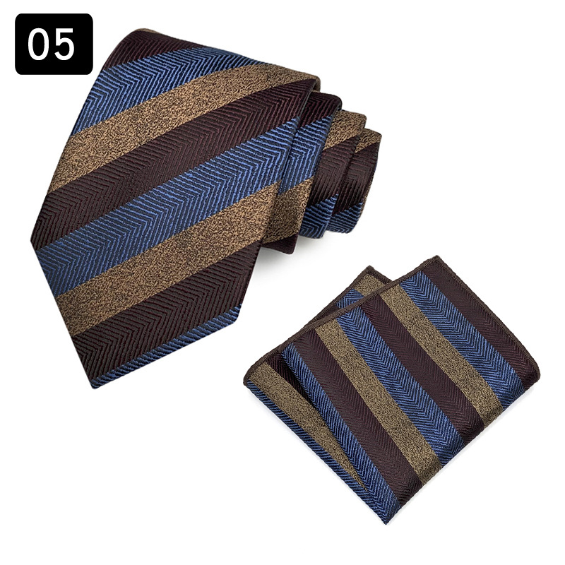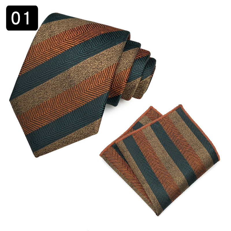 새로운 디자인 스트라이프 넥타이 스퀘어 세트 트렌디 한 남성 공식 비즈니스 유럽과 미국 대외 무역 멀티 컬러 틸트 핸드 8CM