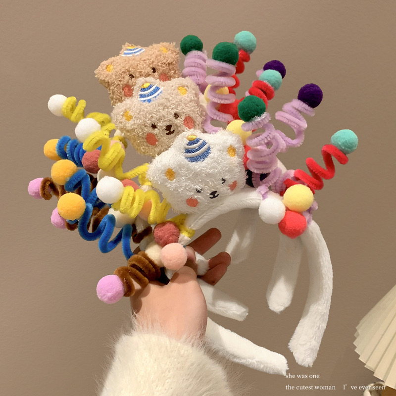 귀여운 만화 꽃 트위스터 머리띠 완성 된 재미있는 파티 생일 창조적 인 머리띠 곰 트위스터 헤드웨어스토어 가기