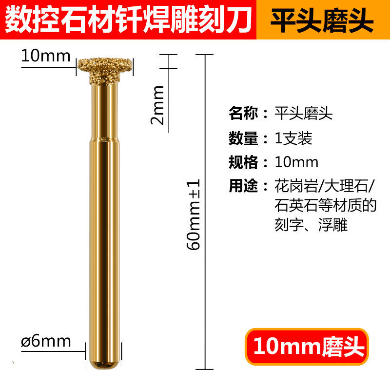 • 브레이징 다이아몬드 연삭 헤드 (10mm 원통형 플랫 헤드)