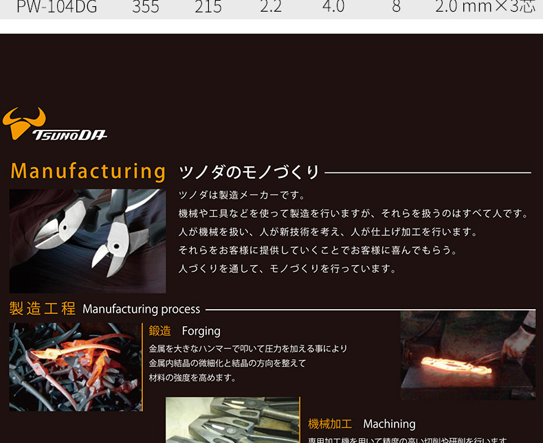 • PW-104DG 강력 플랫 노즈 플라이어(미끄럼 방지 손잡이)