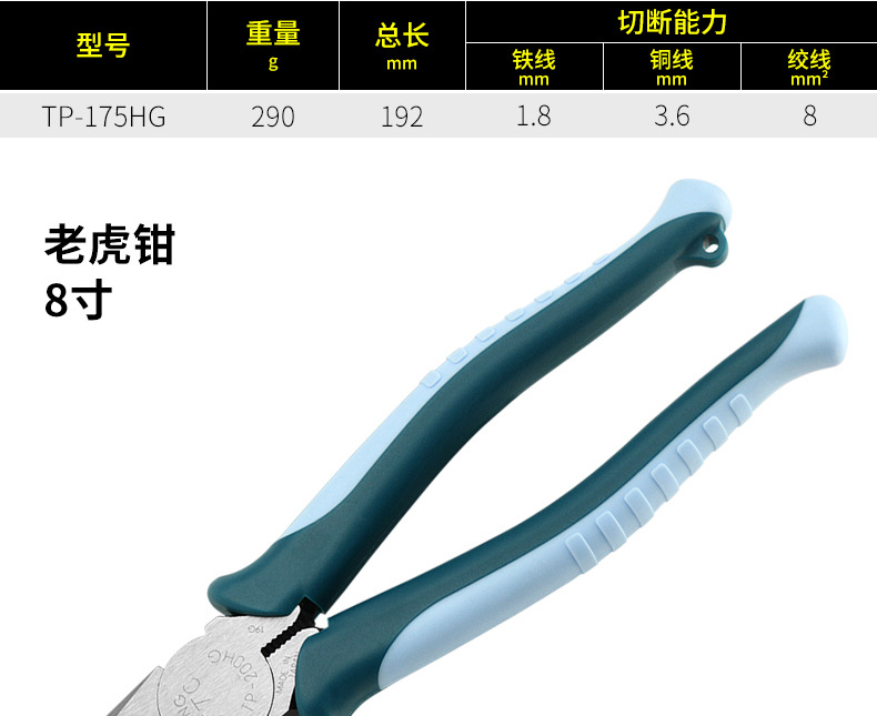 • TP-200HG 전기기사 플랫 노즈 플라이어 200mm 8inch