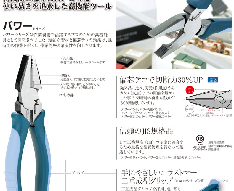• PW-103DG 강력 플랫 노즈 플라이어(미끄럼 방지 손잡이)