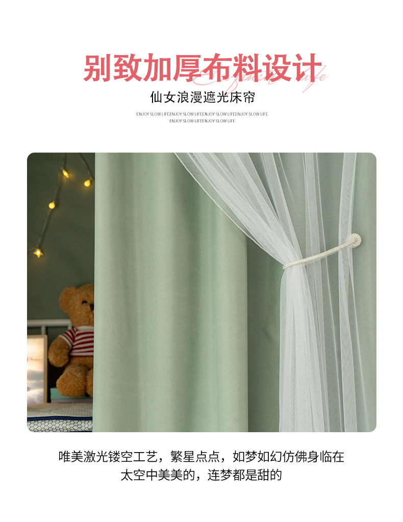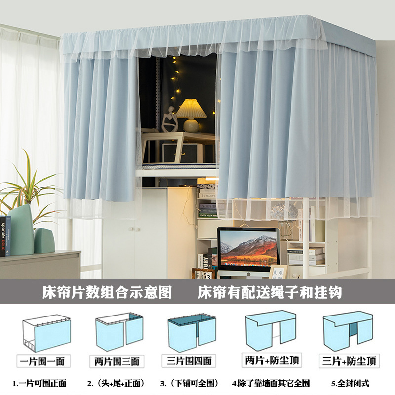 북유럽 대학 학생들의 기숙사 침대 커튼 단색 작은 신선한 음영 두꺼운 침실 상하
