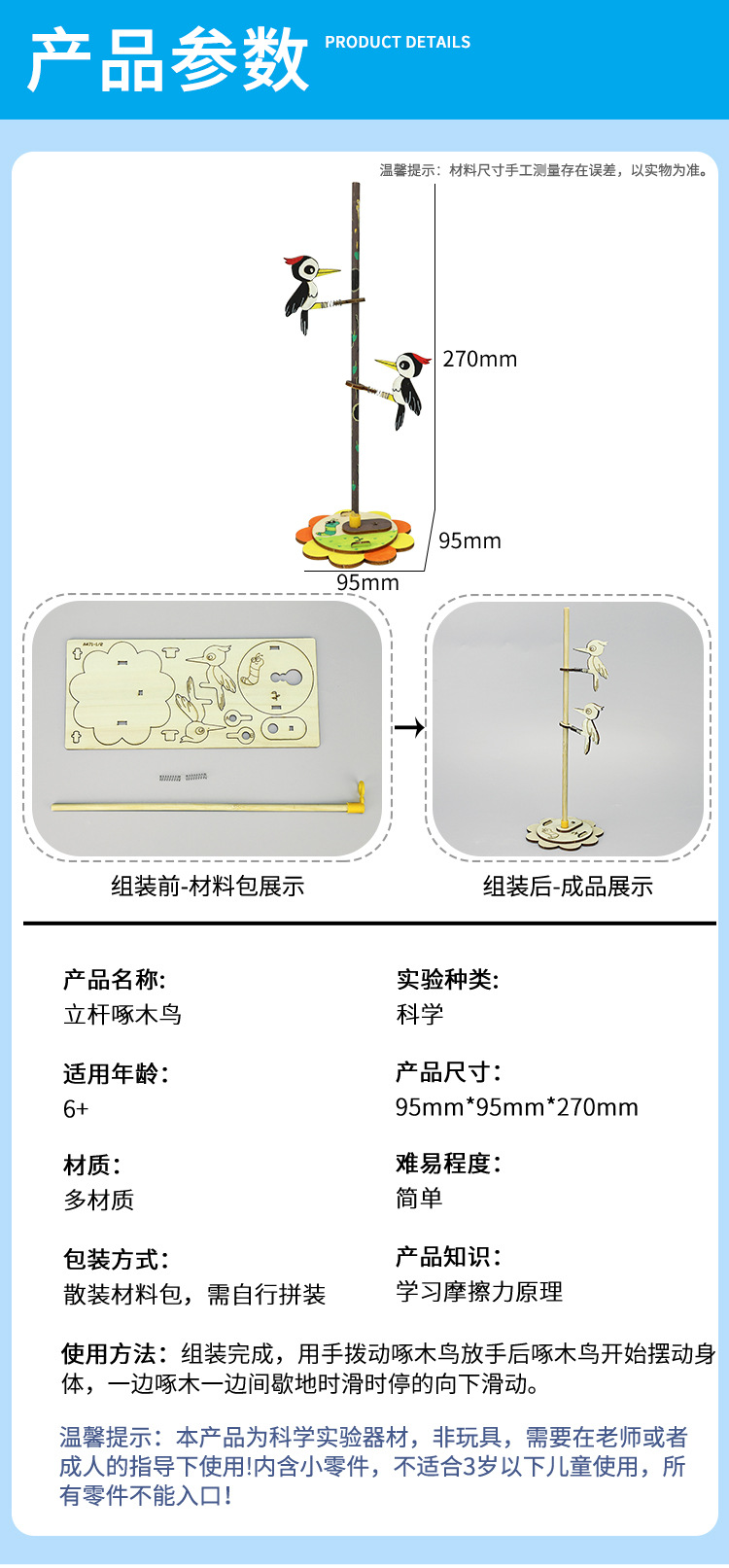 과학 기술 작은 생산 극 딱따구리 과학 실험 패키지 7-14 세 초등학생 마찰 물리학 실험 장난감스토어 가기