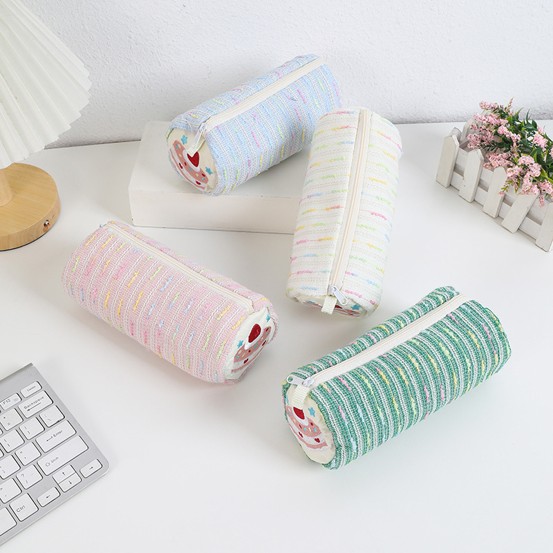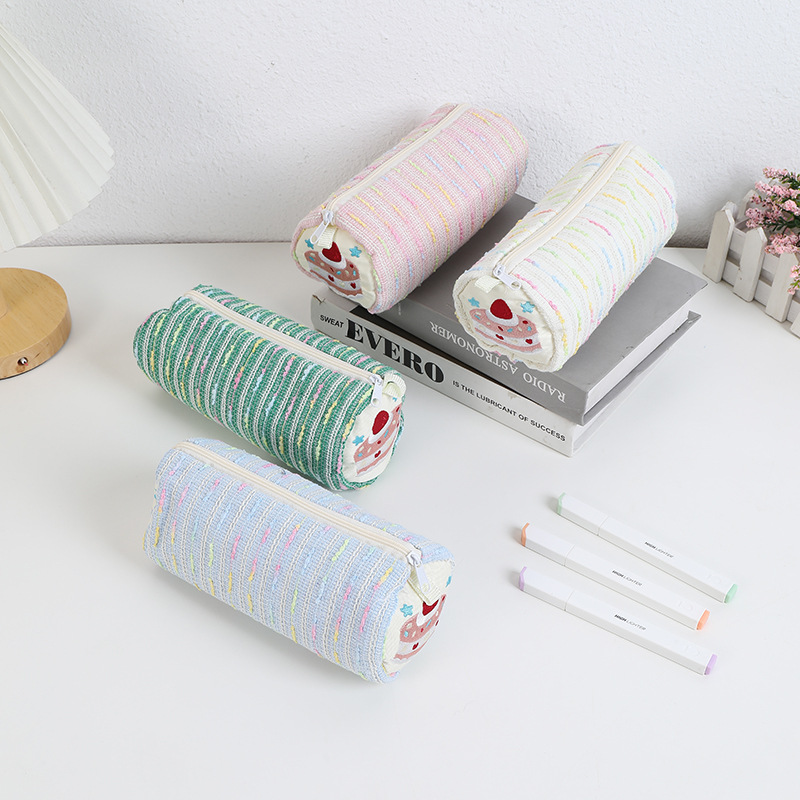 새로운 귀여운 만화 딸기 케이크 연필 가방 모든 경기 소녀의 심장 문구 저장 가방 대용량 펜 통치자 문구 상자