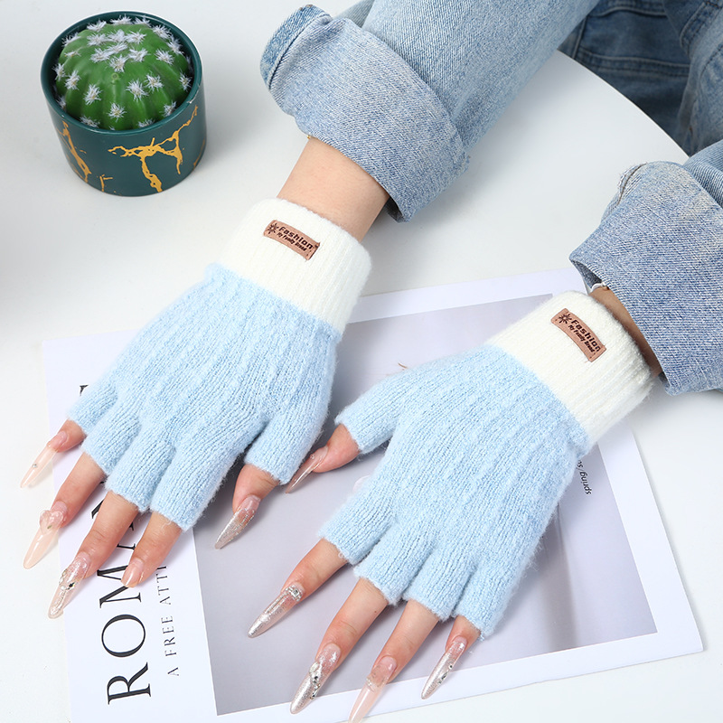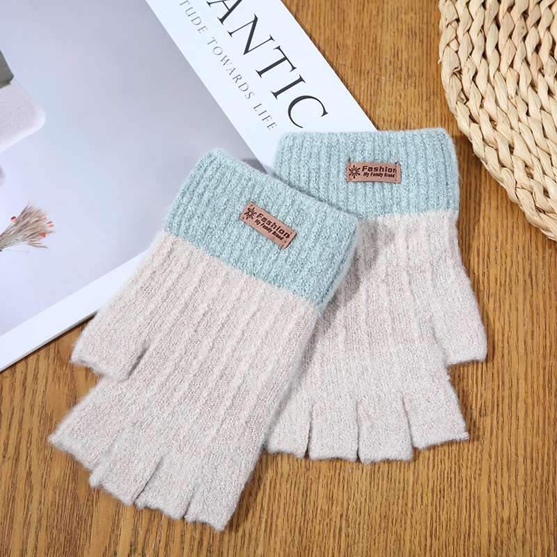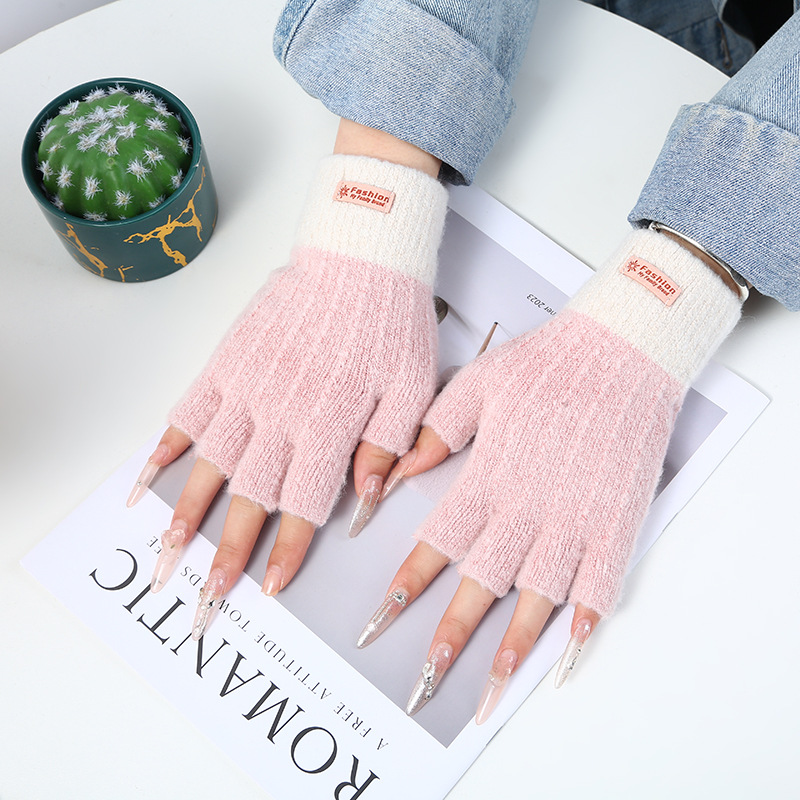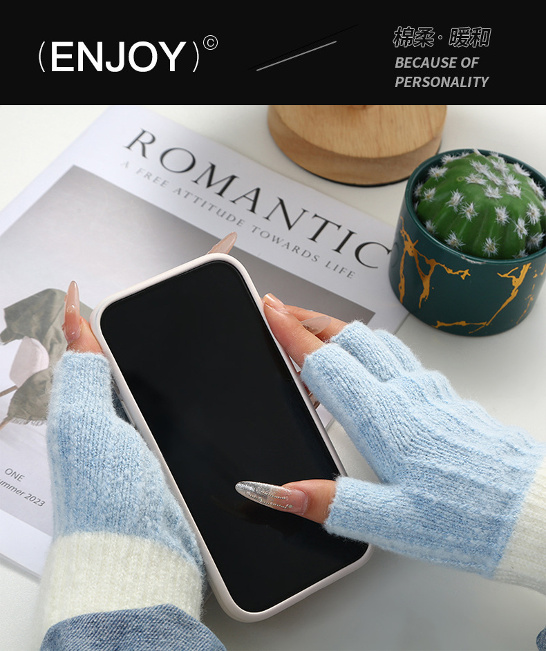 알파카 반 손가락 장갑 여성용 니트 터치 스크린 따뜻한 두꺼운 기모 장갑 한국 스타일 겨울 사이클링 장갑스토어 가기