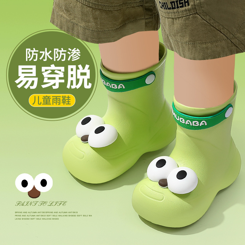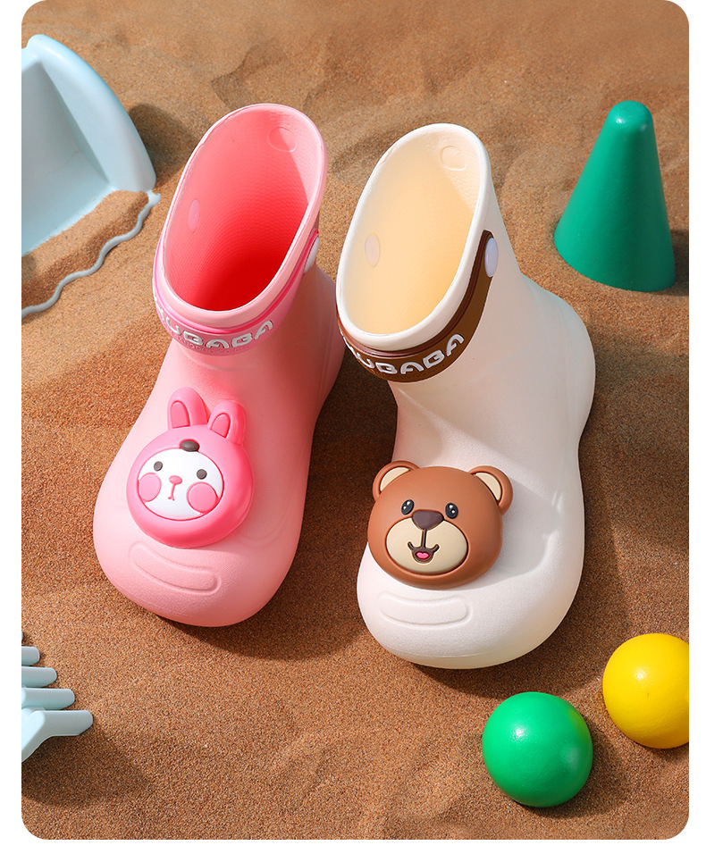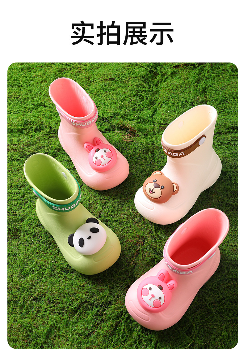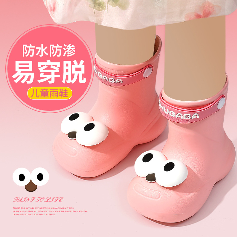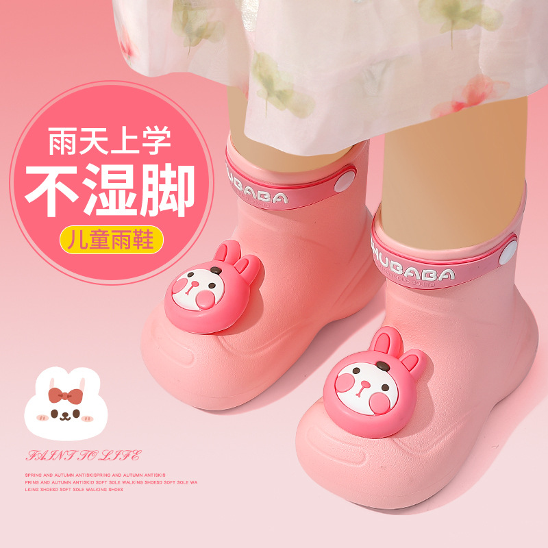 어린이 장화, 어린이 중간 튜브 장화, 소년 소녀, 초등학생, 귀여운 만화 미끄럼 방지 유치원 아기 방수 신발