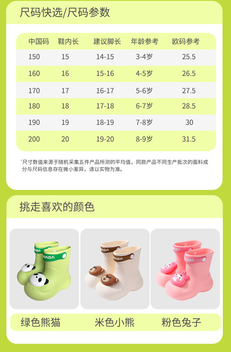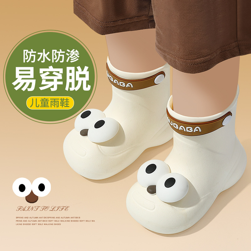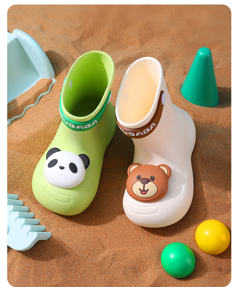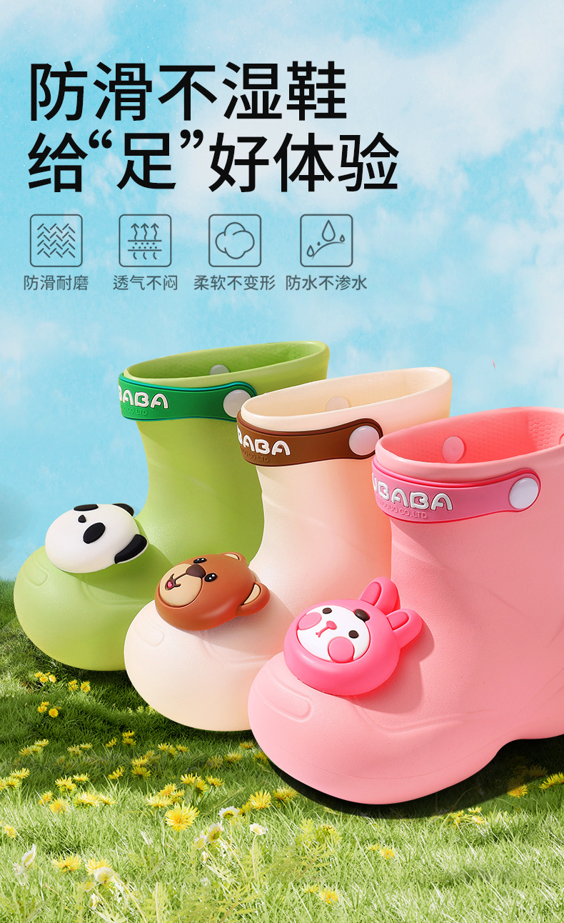 어린이 장화, 어린이 중간 튜브 장화, 소년 소녀, 초등학생, 귀여운 만화 미끄럼 방지 유치원 아기 방수 신발