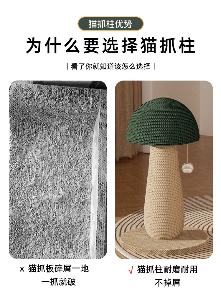 사이 잘 고양이 긁는 열 버섯 고양이 긁는 보드 착용 방지 스크랩-무료 수직 고양이 발톱 보드 사이 잘 로프 발톱 고양이를위한 장난감스토어 가기
