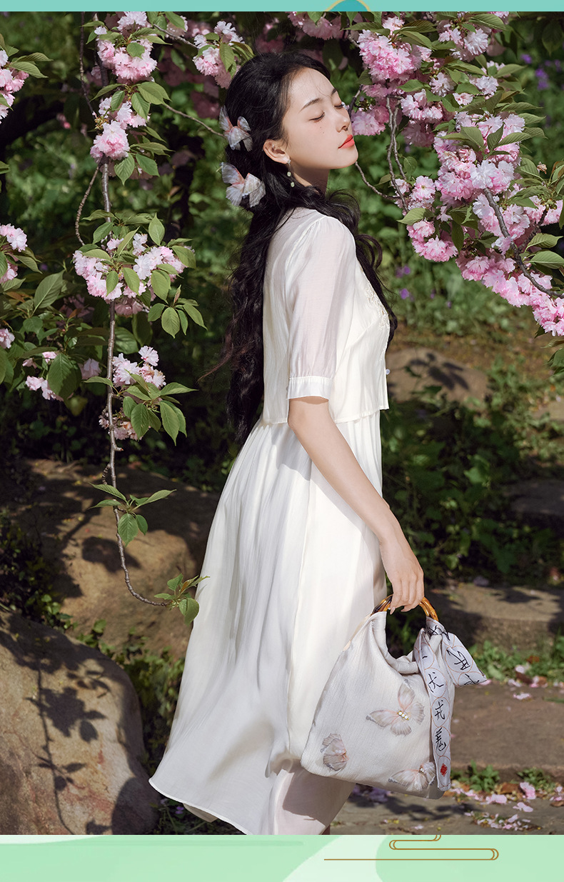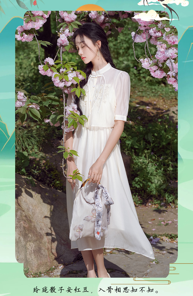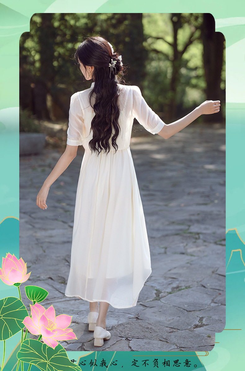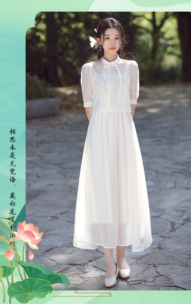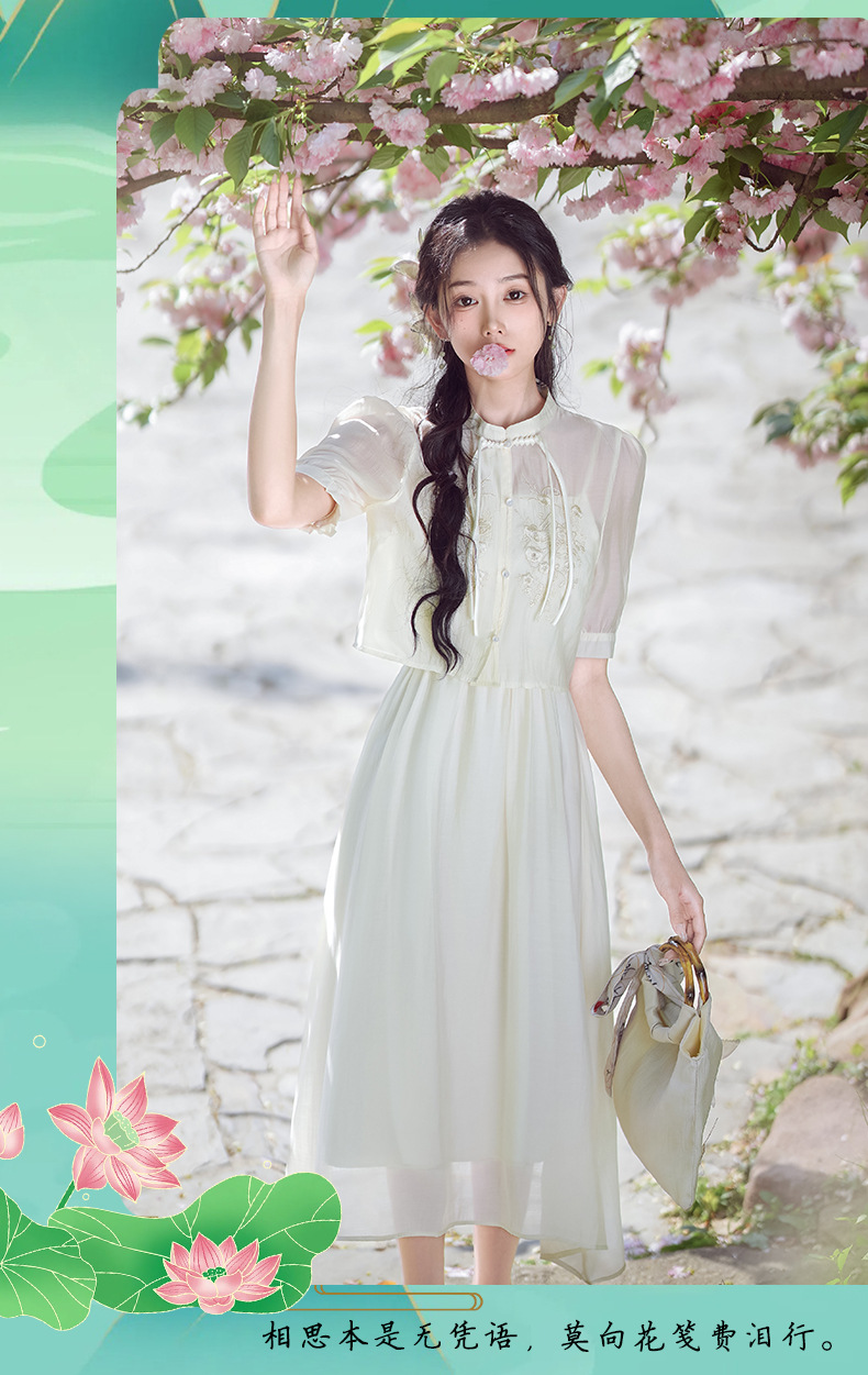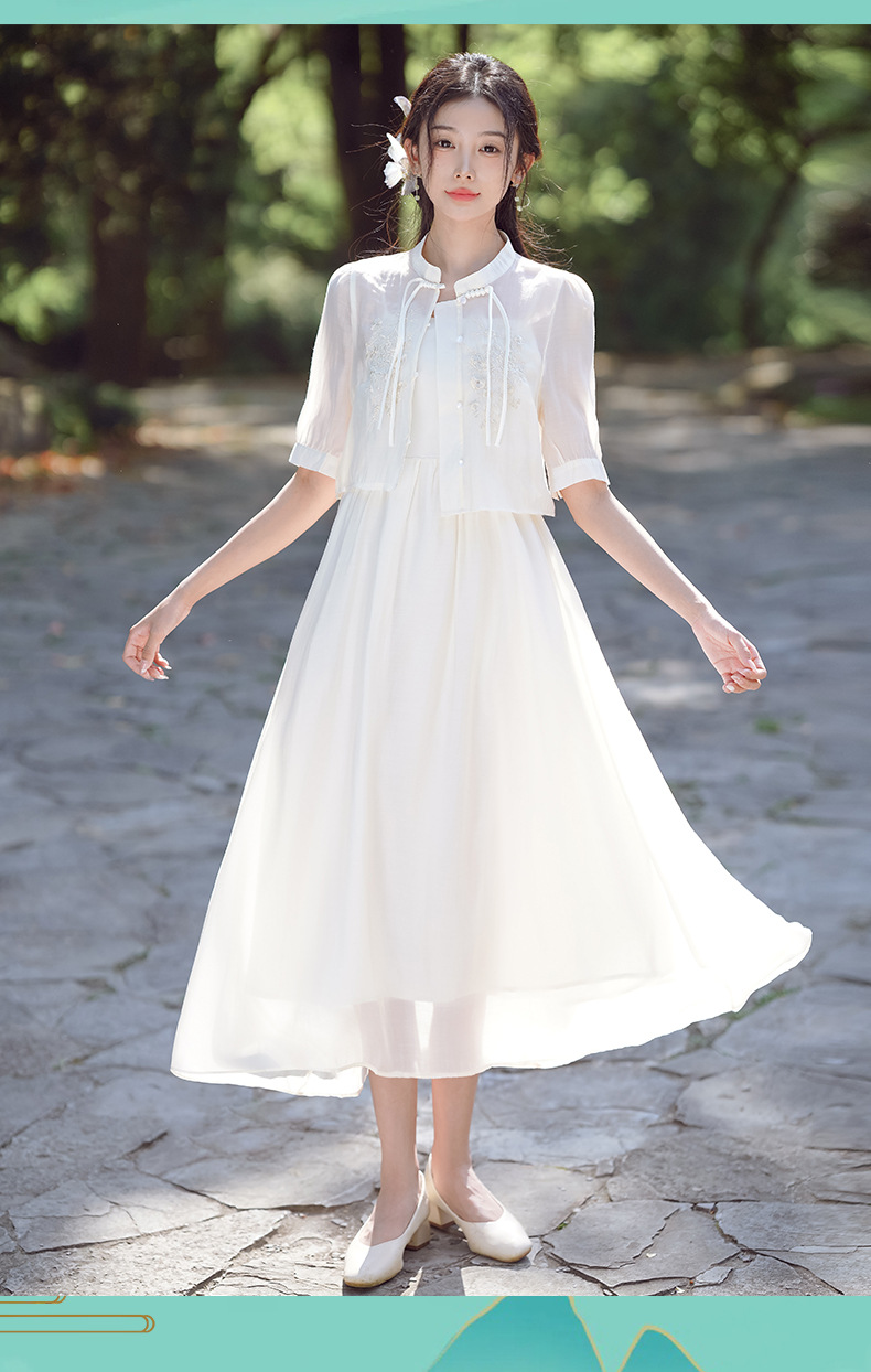 올해 인기있는 아름다운 원피스 여성의 여름 새로운 중국 스타일의 버클 우아한 탑 재킷 슬링 원피스