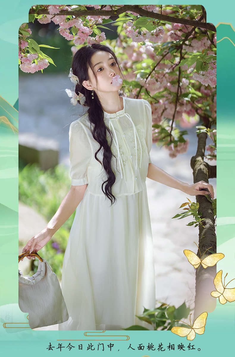 올해 인기있는 아름다운 원피스 여성의 여름 새로운 중국 스타일의 버클 우아한 탑 재킷 슬링 원피스스토어 가기