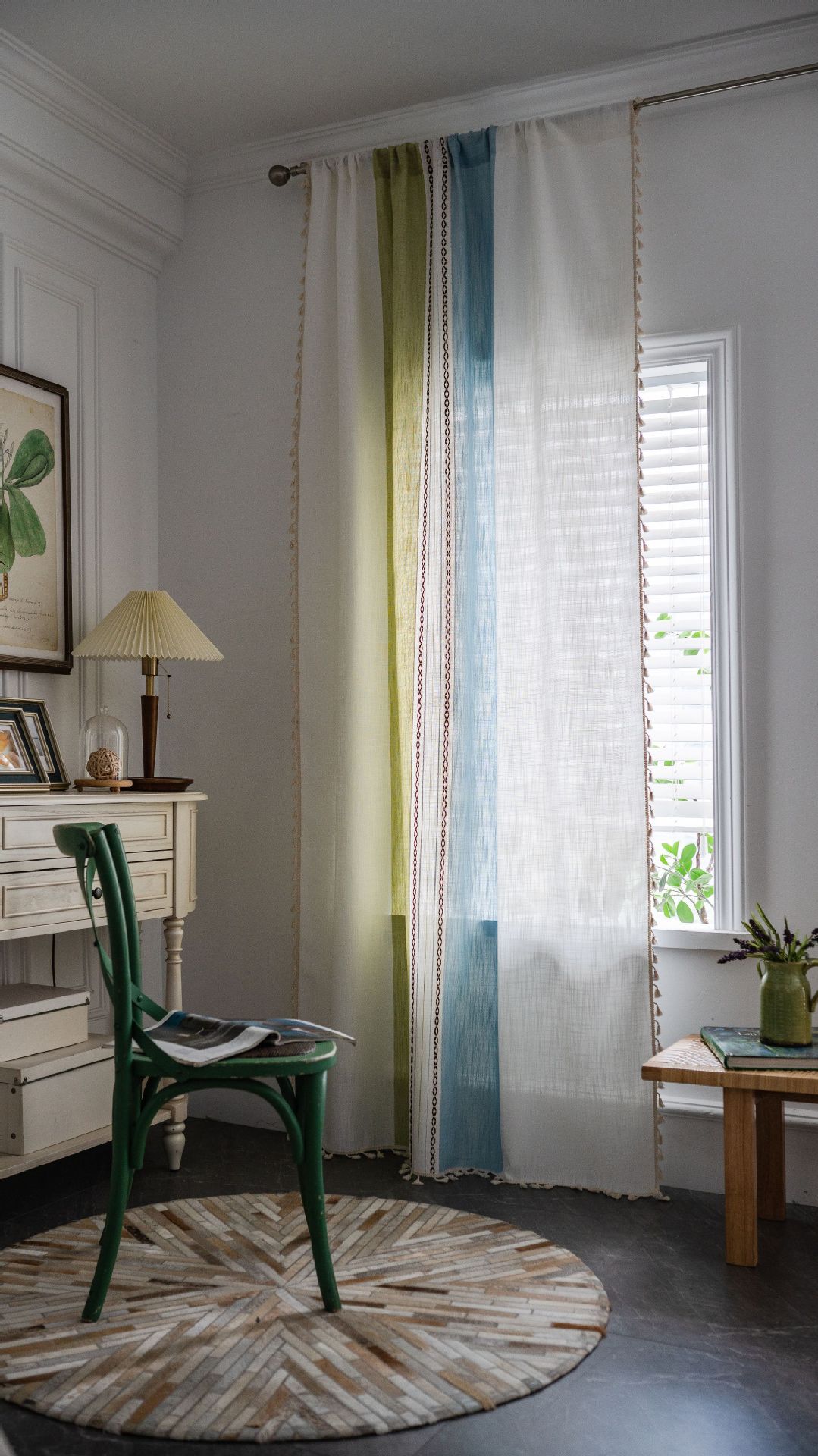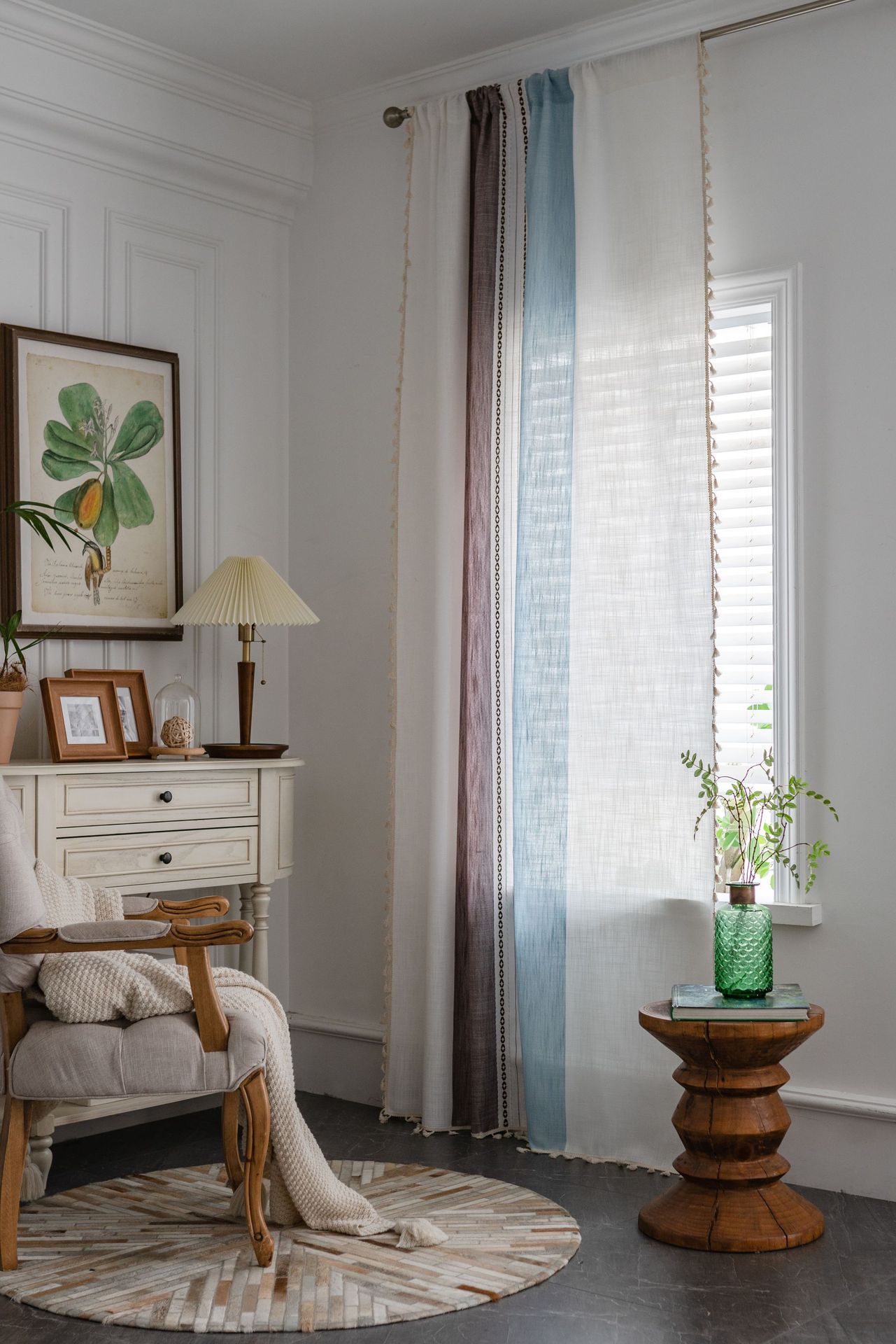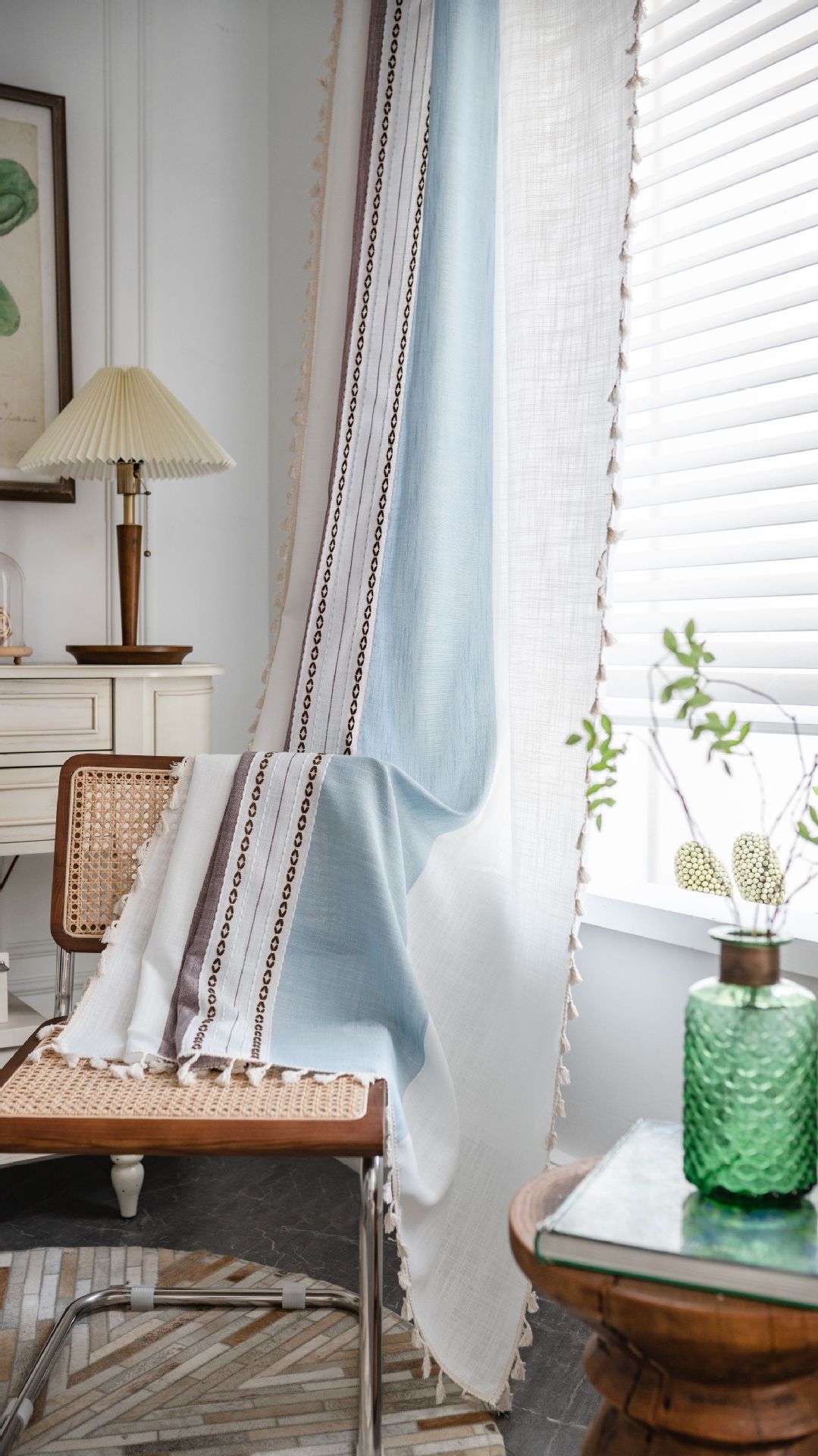대외 무역 크로스보더 인기 상품 배색 자카드 공예 커튼 반차광 차양 시골 스타일 거실 창문 커튼스토어 가기