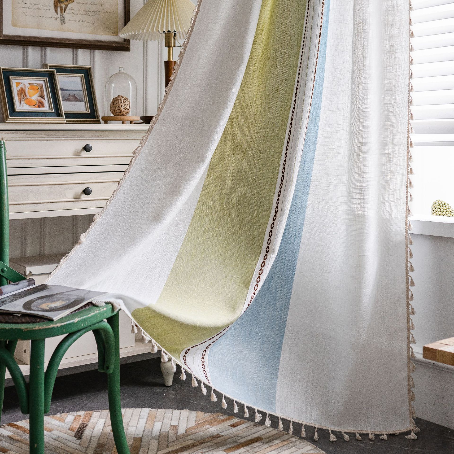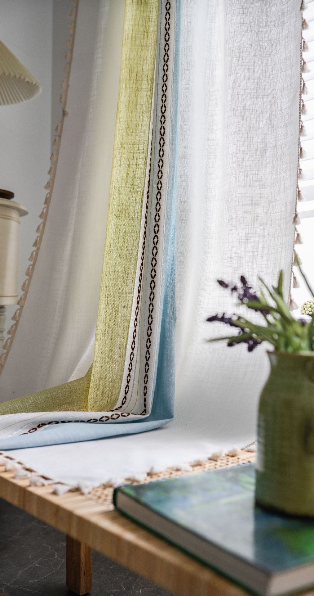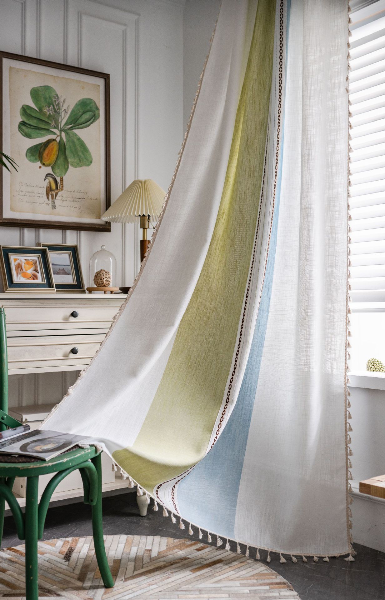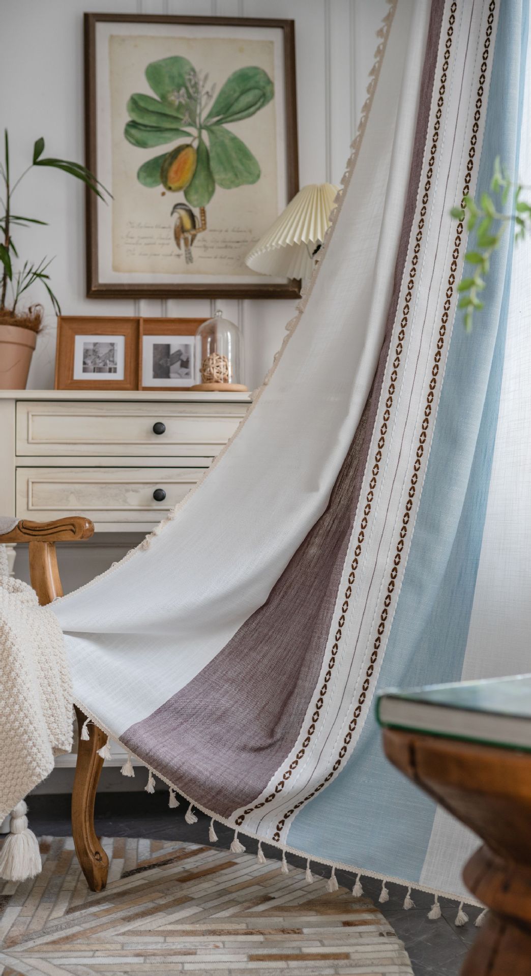 대외 무역 크로스보더 인기 상품 배색 자카드 공예 커튼 반차광 차양 시골 스타일 거실 창문 커튼스토어 가기