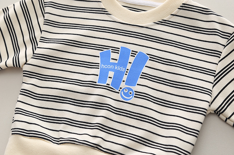 남학생 가을 의류 세트 2024 새로운 어린이 아기의 봄 의류 캐주얼 스트라이프 레터 스웨터 청바지 투피스 세트