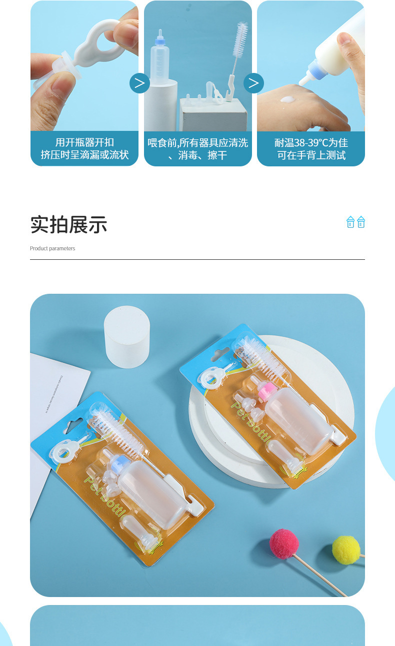 애완 동물 병 세트 개 병 강아지 고양이 고양이 아기 고양이 병 멀티 젖꼭지 부드러운 입 병 브러시 병 도매스토어 가기