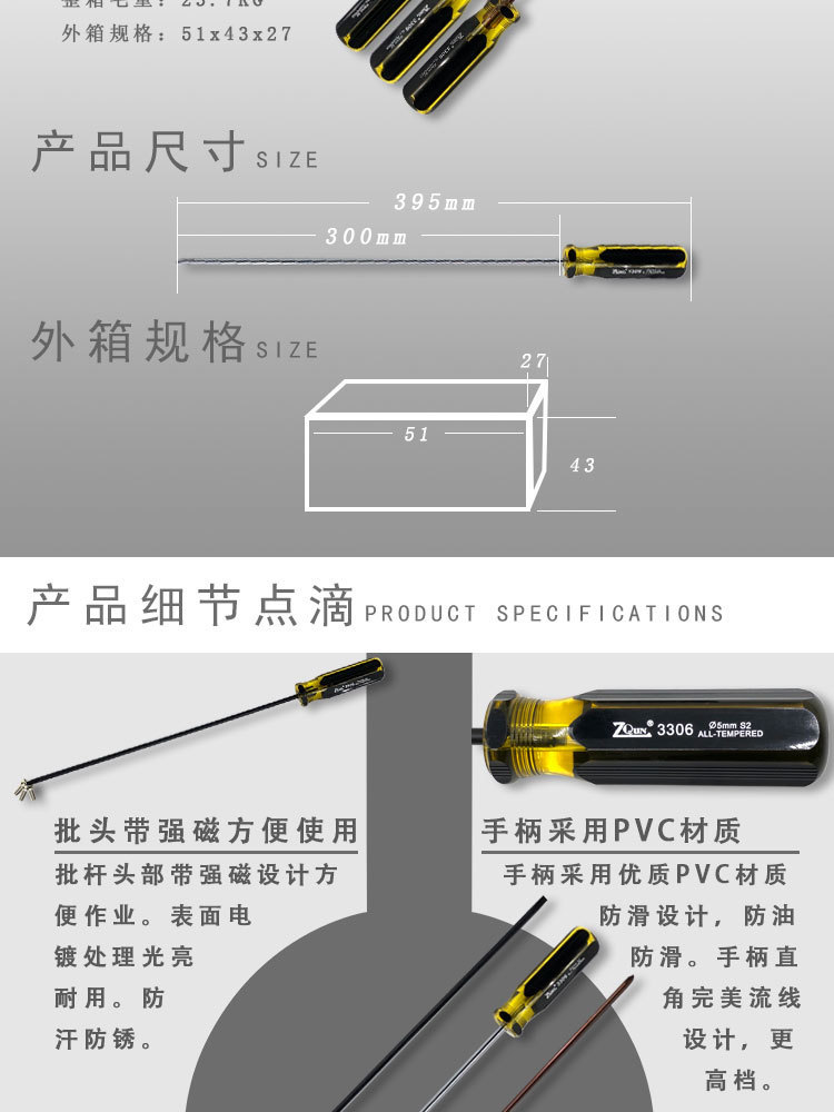 • 봉제 기계 스크루 드라이버 5*300 크로스 브론즈 S2