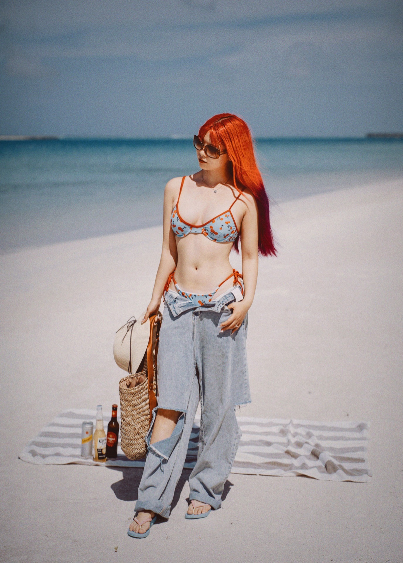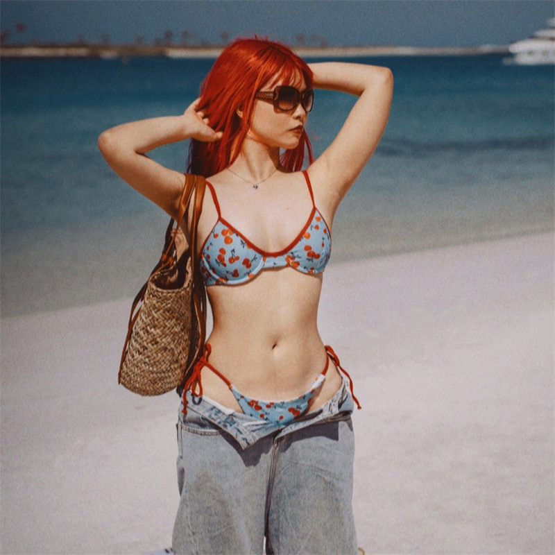 국경 새 한국 스타일 뜨거운 소녀 비키니 Ins 스틸 링 3 점 인쇄 귀여운 소녀 분할 수영복 수집