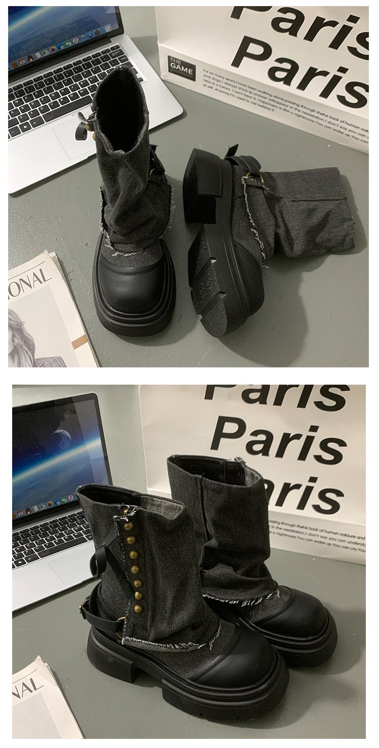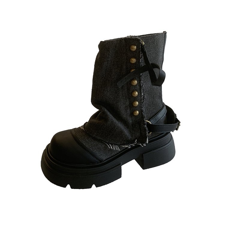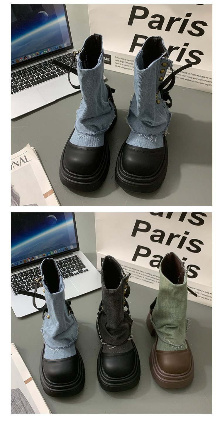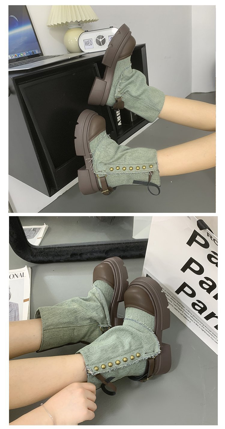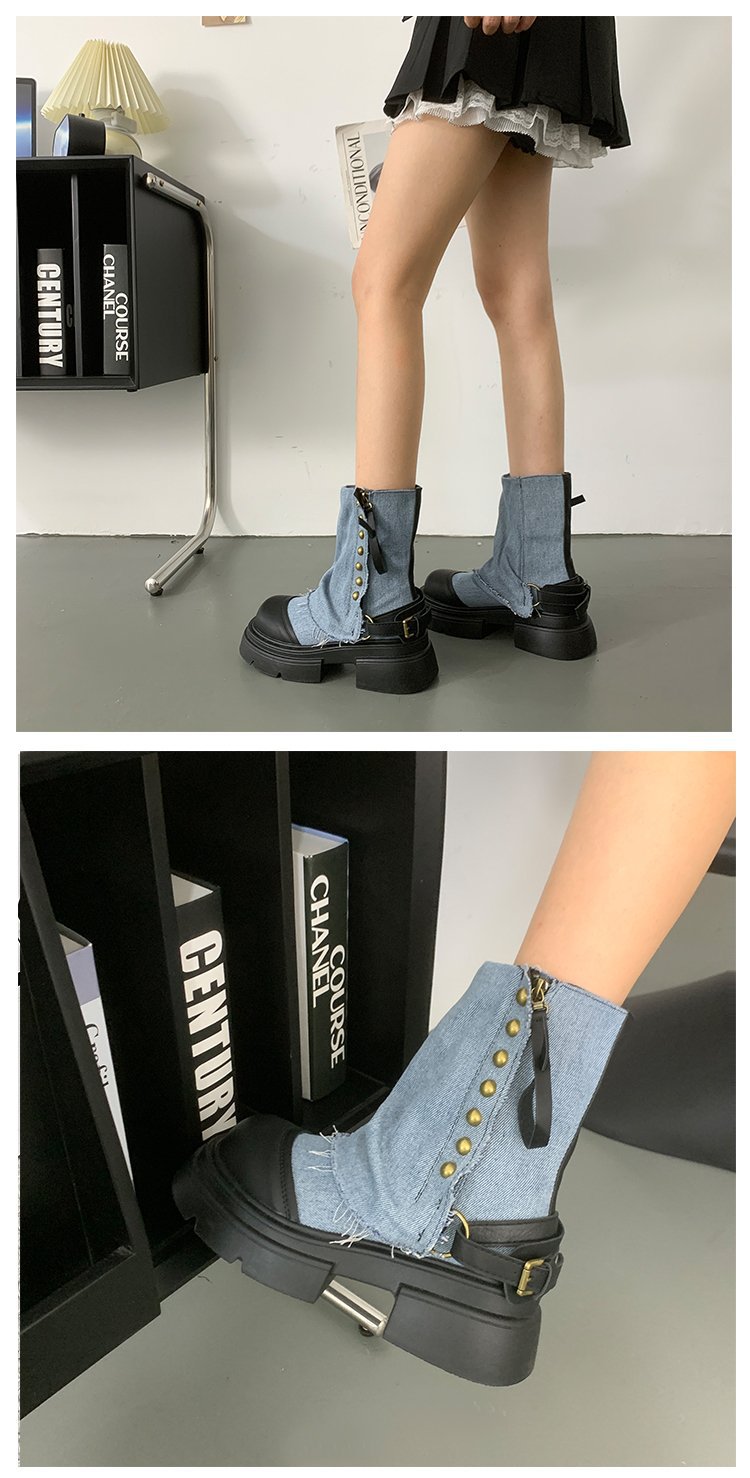 영국 스타일 올 매치 두꺼운 바닥 마틴 부츠 여성 가을 2024 새로운 패션 서양 데님 짧은 부츠 기사 부츠스토어 가기