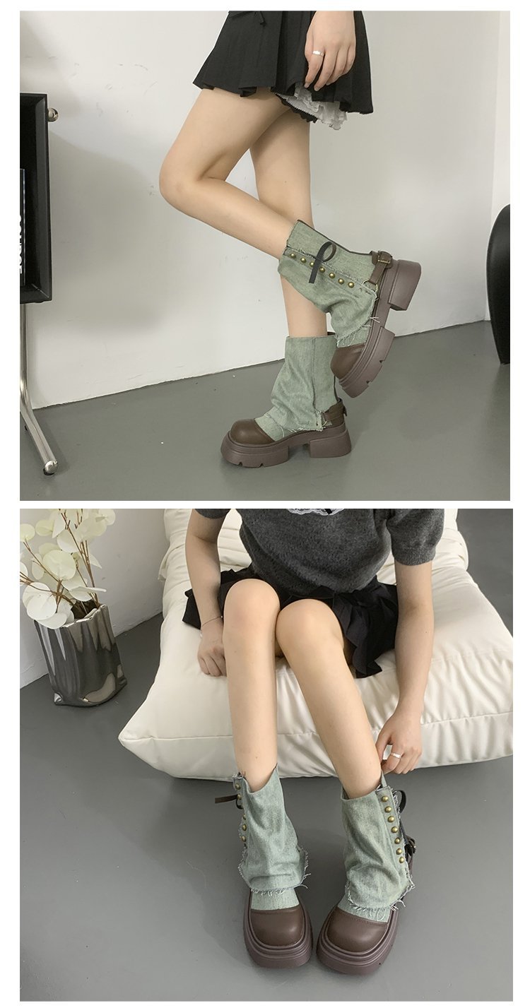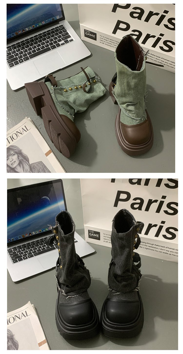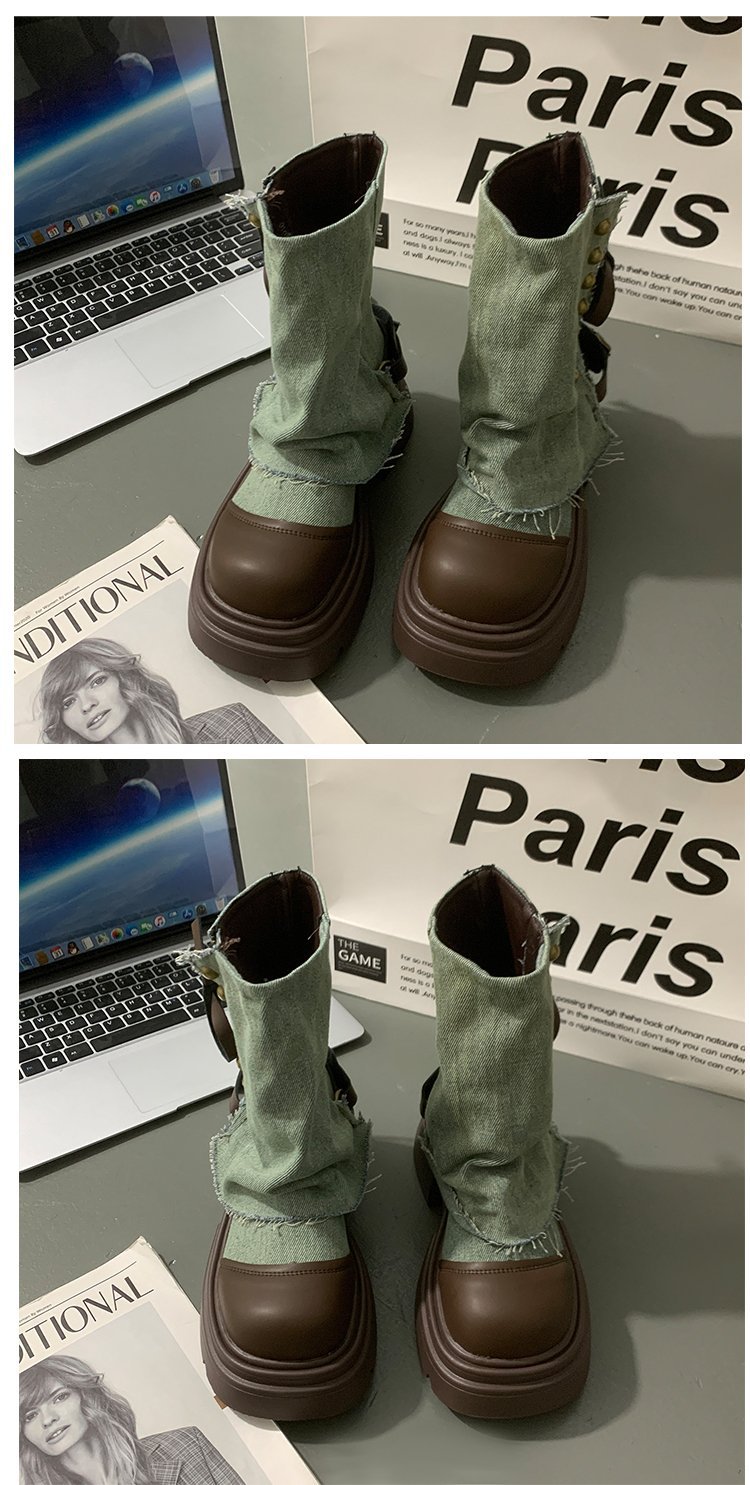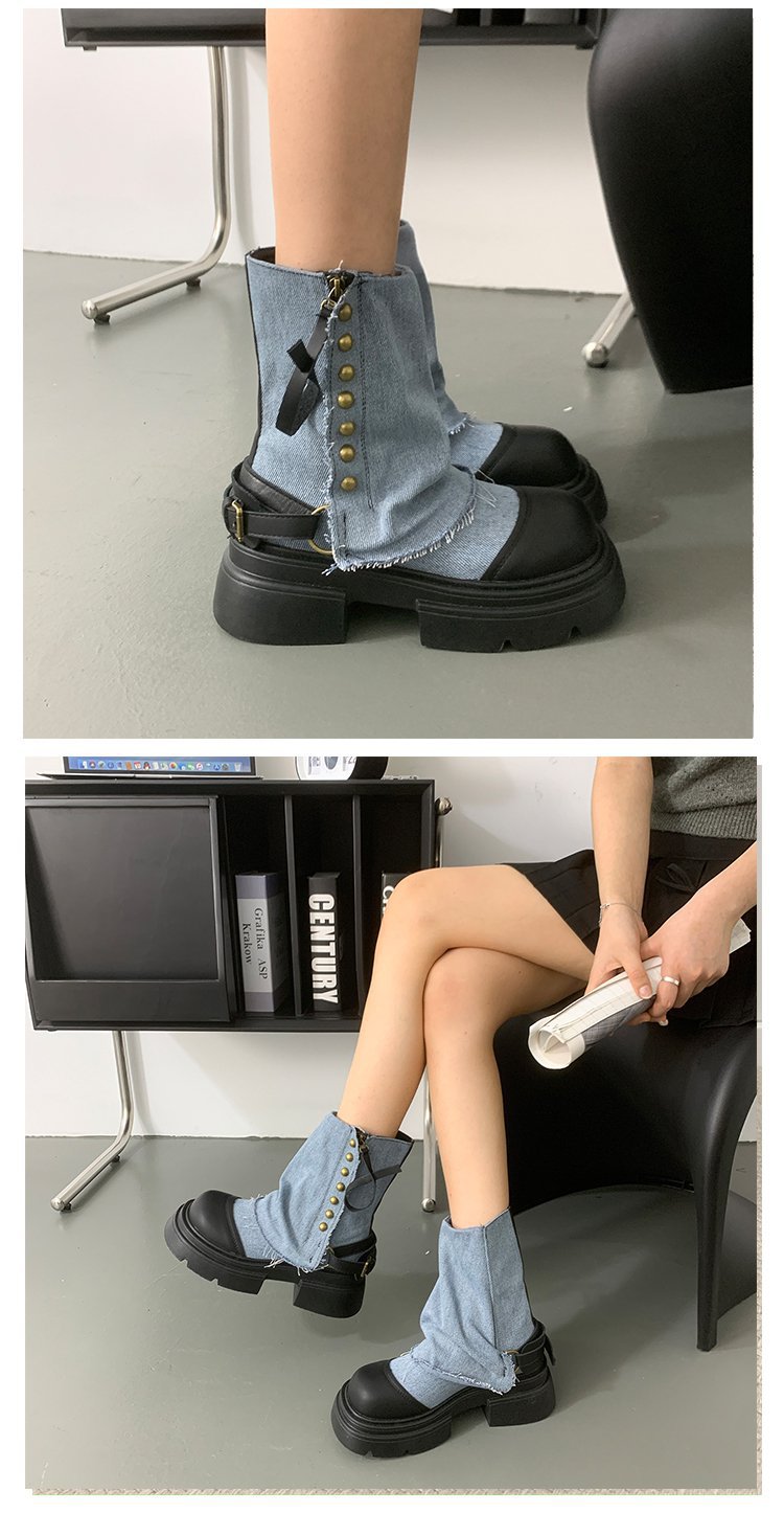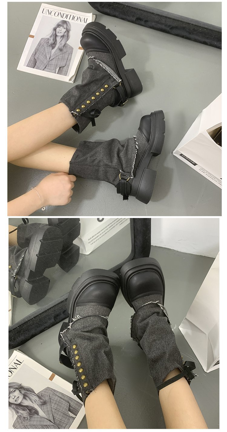 영국 스타일 올 매치 두꺼운 바닥 마틴 부츠 여성 가을 2024 새로운 패션 서양 데님 짧은 부츠 기사 부츠스토어 가기