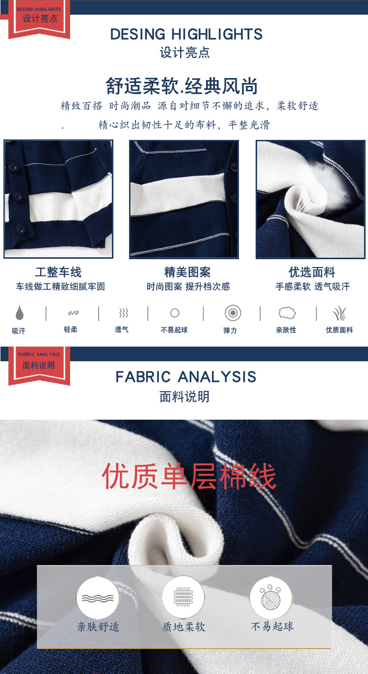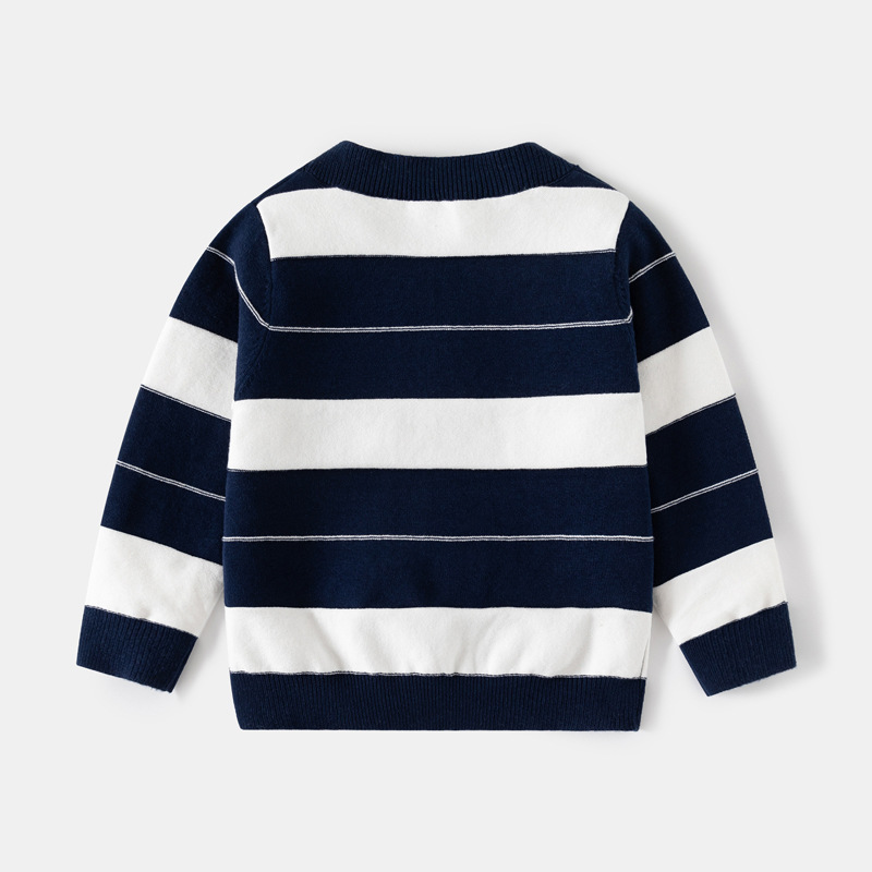 텐윈게 아동복 남아용 스트라이프 단층 면사 가디건 2025 가을 신상 아동용 싱글 버튼 스웨터 도매스토어 가기