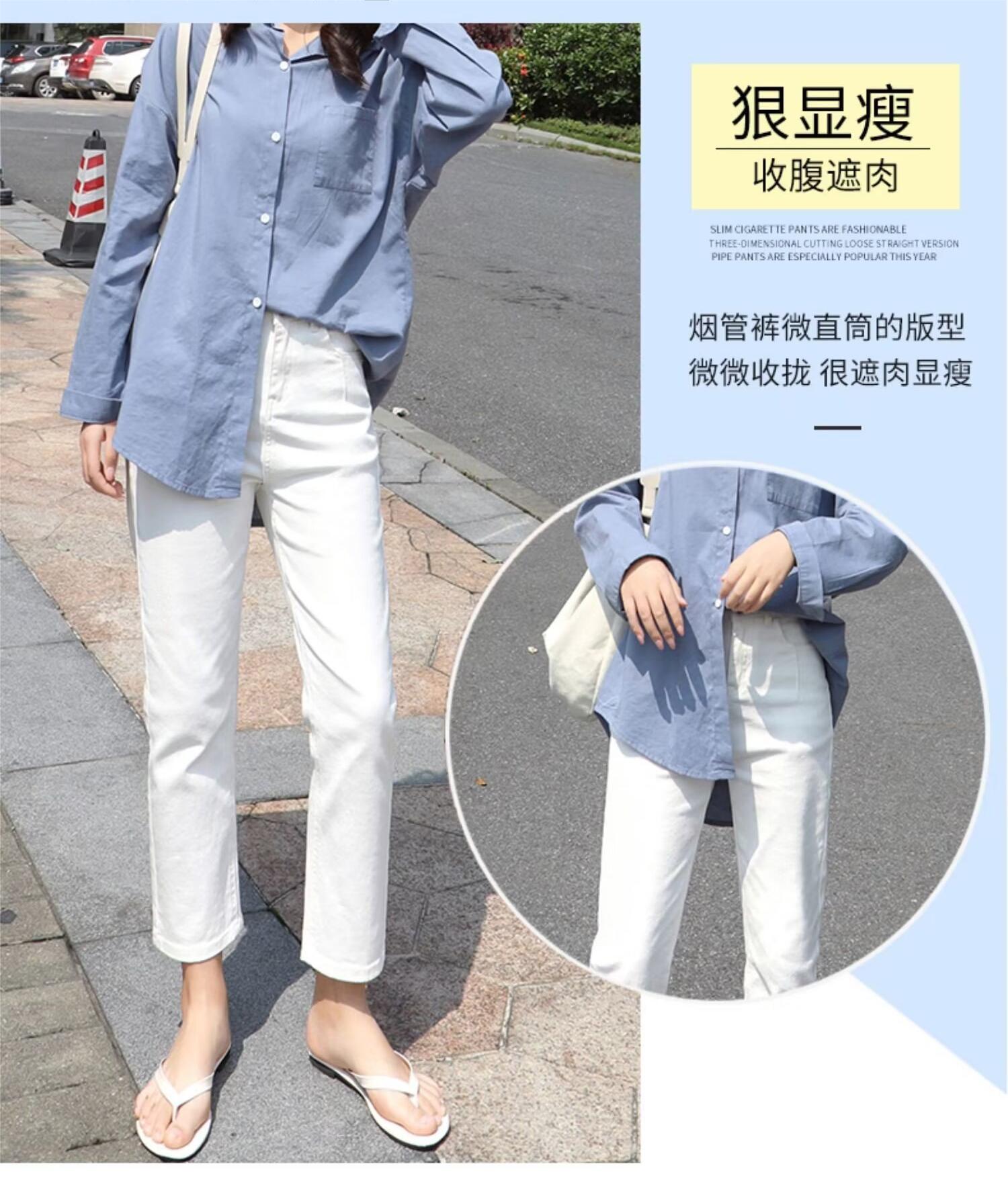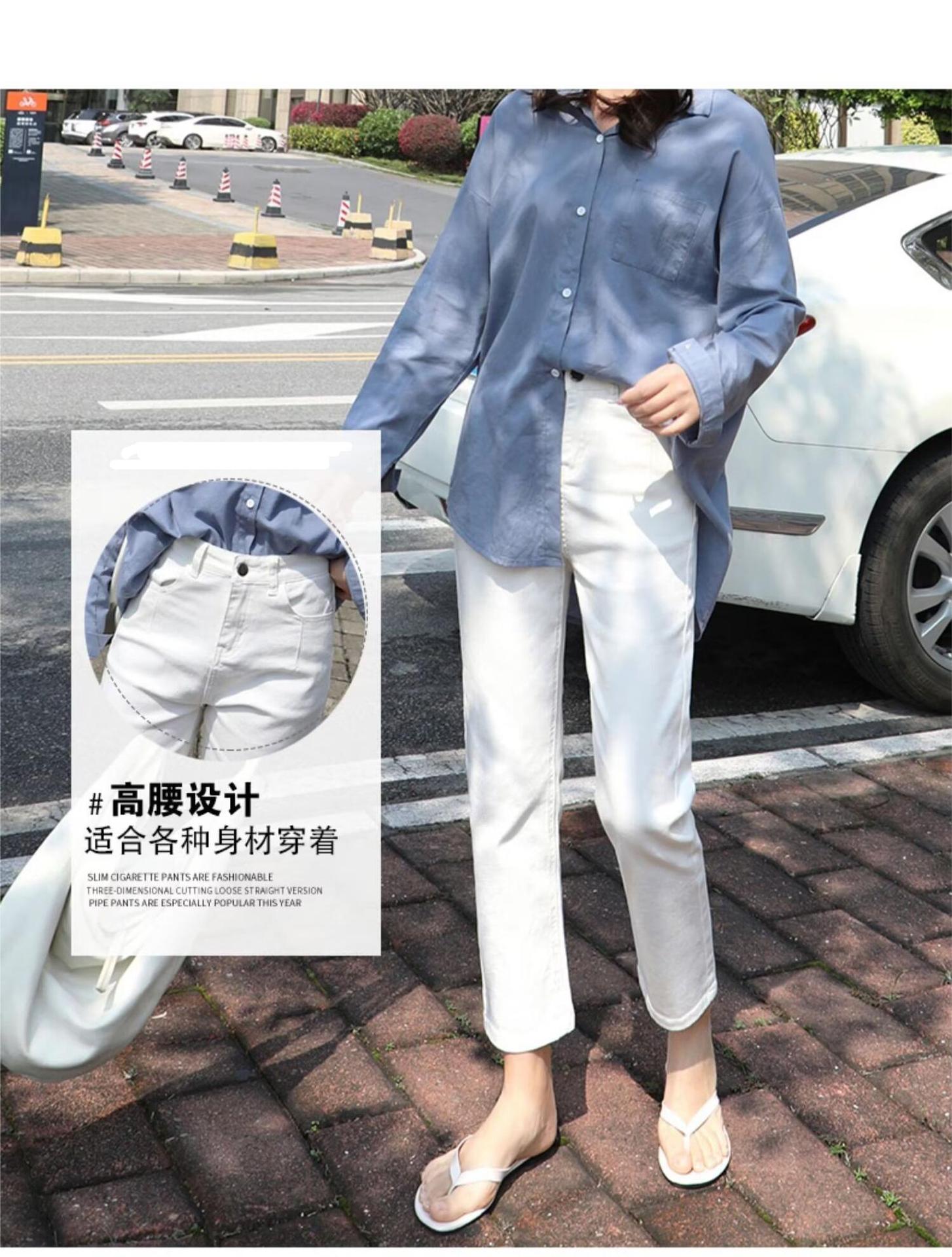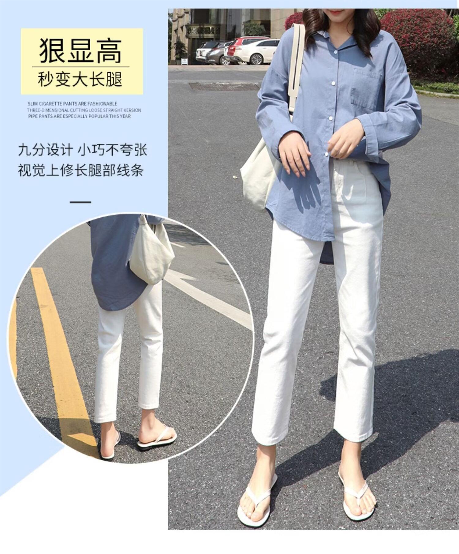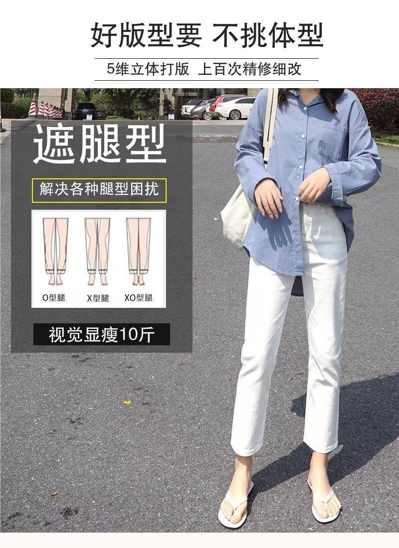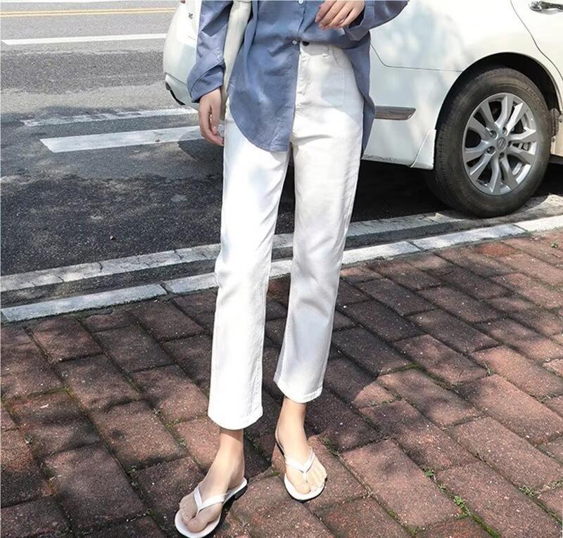 봄 여름 여성을 위한 한국식 하이웨이스트 스트레이트 청바지 새로운 트렌디 브랜드 루즈한 화이트 다용도 슬리밍 담배 파이프 9부 바지스토어 가기
