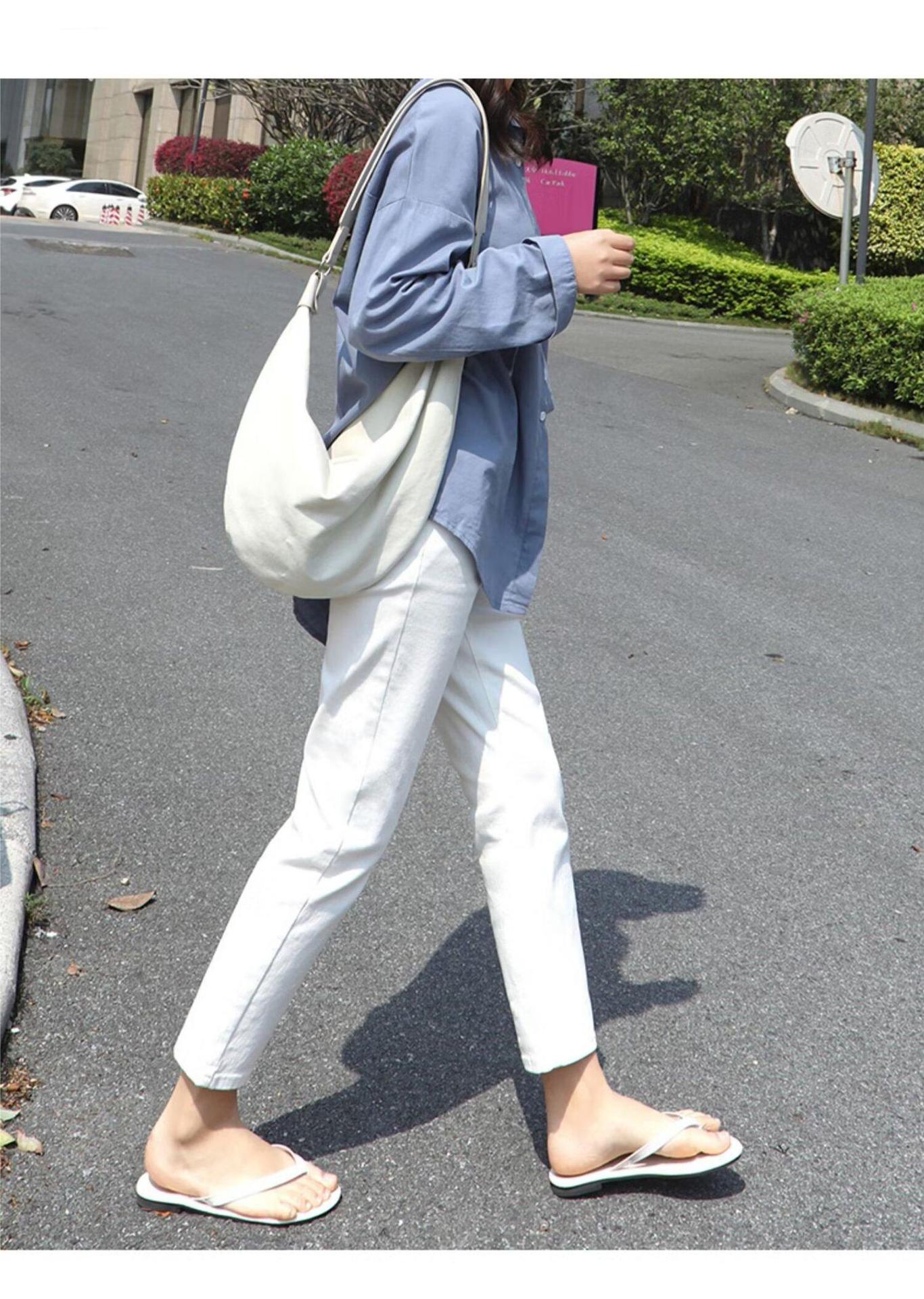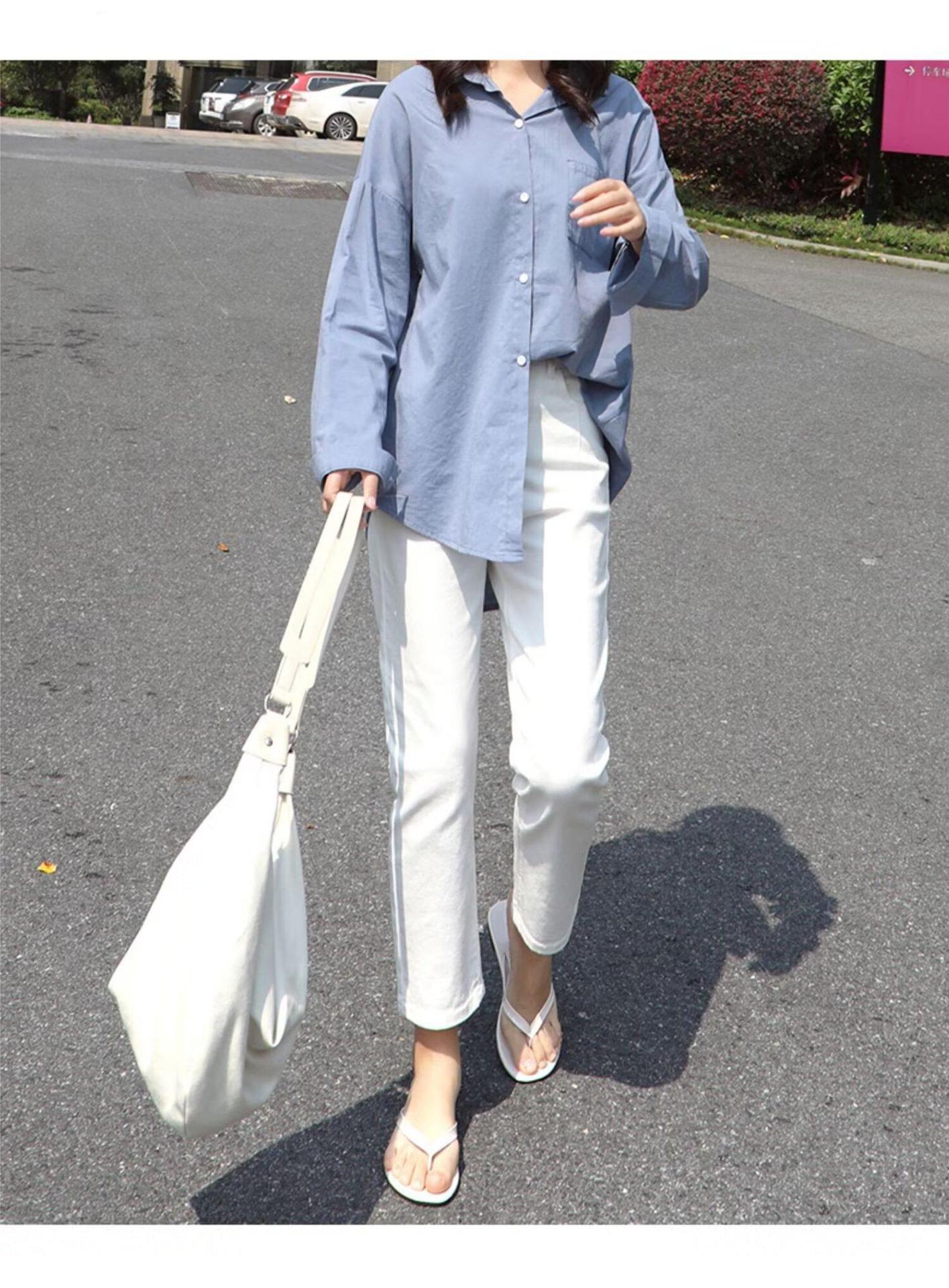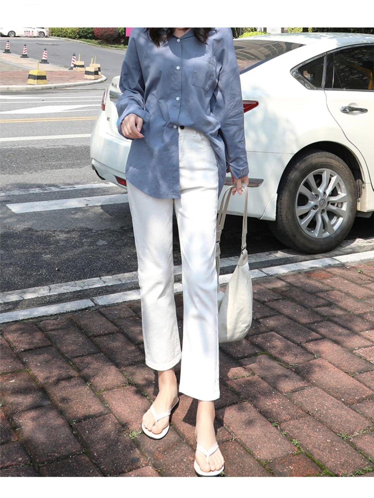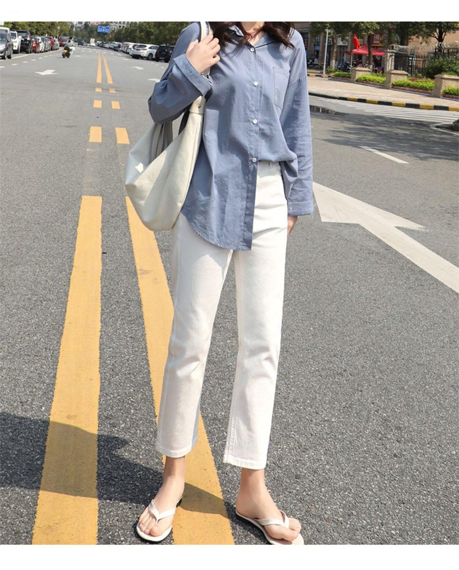 봄 여름 여성을 위한 한국식 하이웨이스트 스트레이트 청바지 새로운 트렌디 브랜드 루즈한 화이트 다용도 슬리밍 담배 파이프 9부 바지스토어 가기