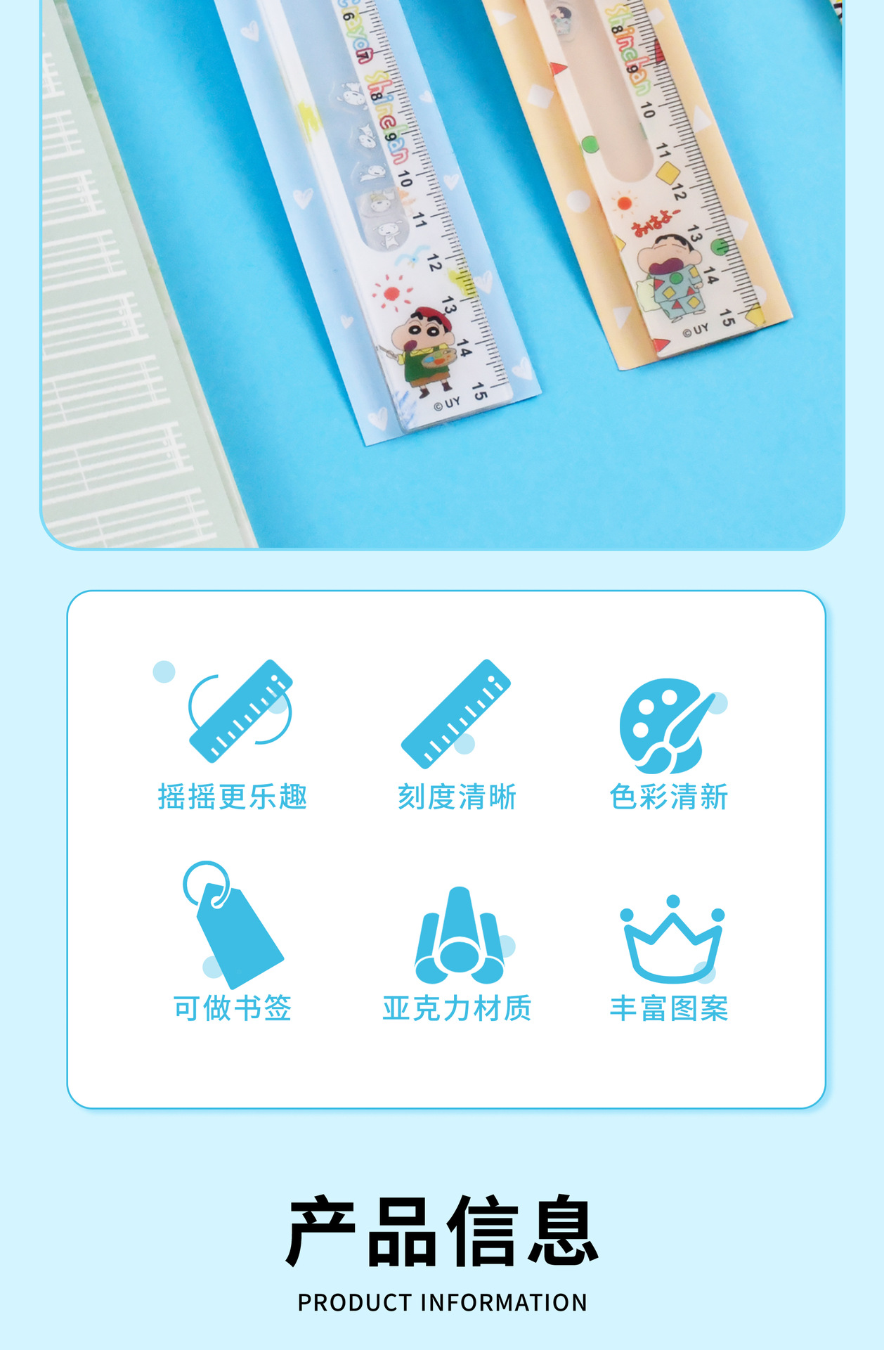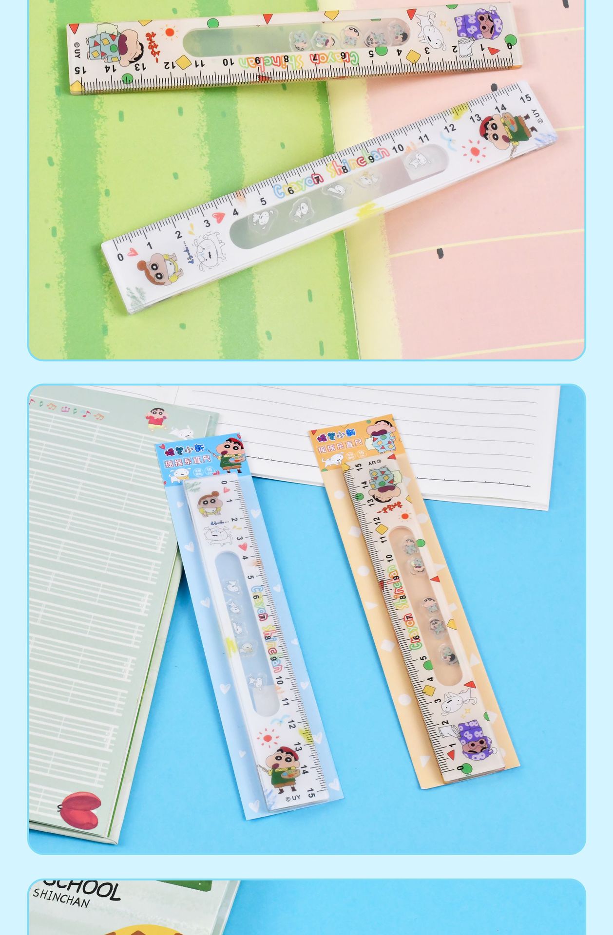 크레용 작은 새로운 진정한 승인 * 음악 통치자 새로운 만화 통치자 학생 문구 15cm 아크릴스토어 가기
