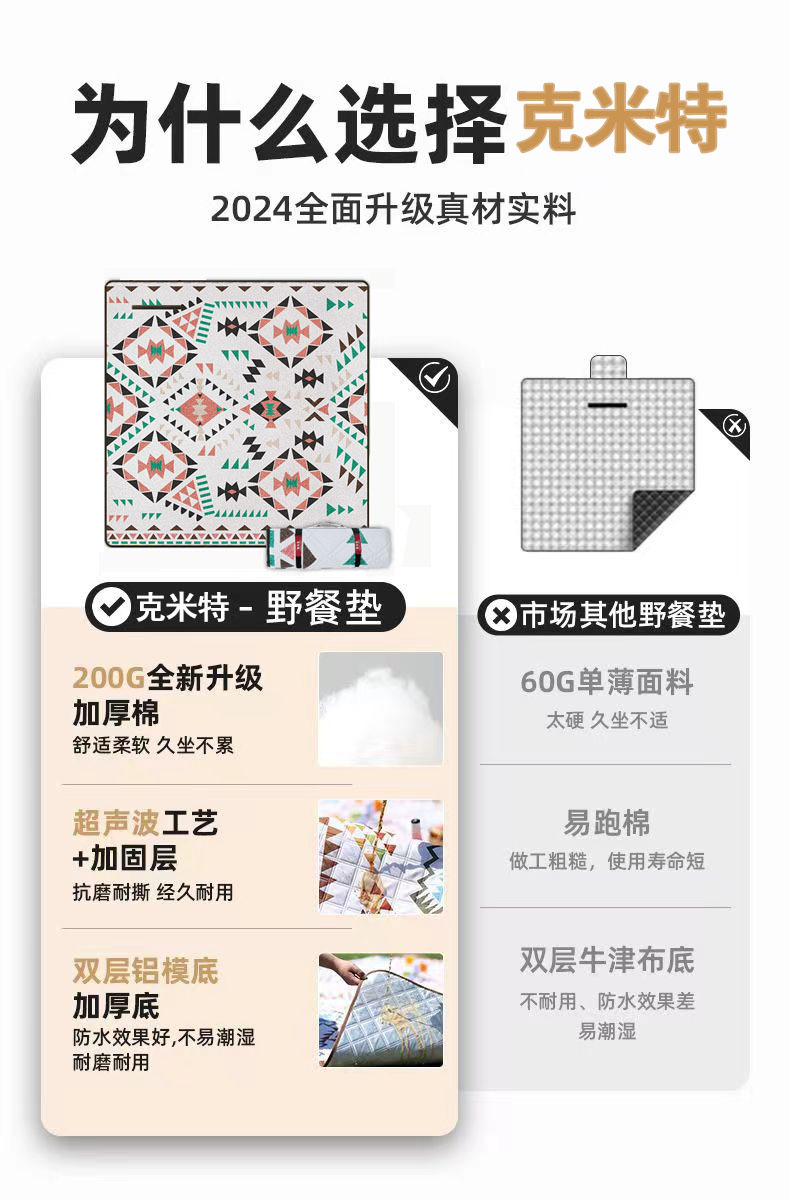 [소식통] 초음파 피크닉 매트 캠핑 기계 세척 두꺼운 수분 방지 매트 비치 파크 야외 매트 바닥 매트
