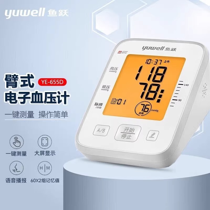 물고기 도약 Sphygmomanometer YE655D 상부 팔 전자 혈압 측정기 홈 음성 백라이트 자동 압력 측정기