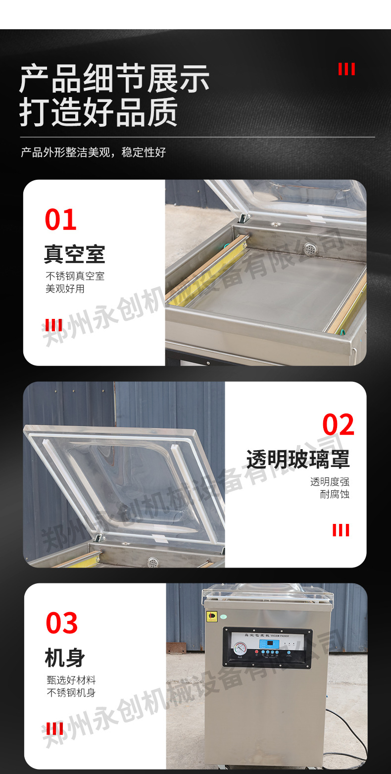 상업용 스테인레스 스틸 진공 포장 기계 두꺼운 더블 챔버 평면 진공 포장 진공 밀봉 기계 자동