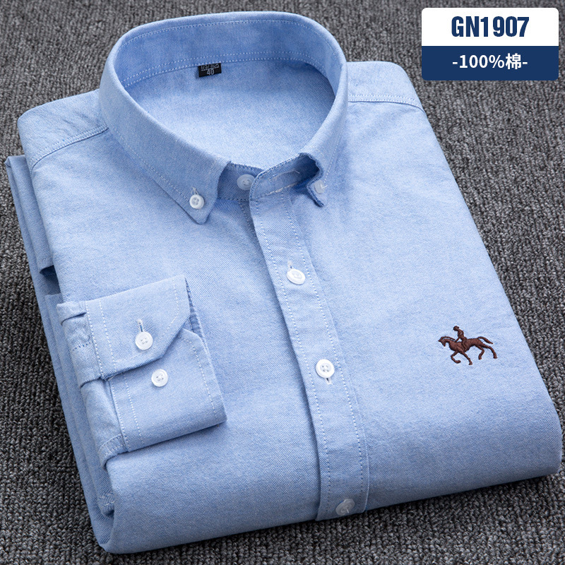 순면 긴팔 셔츠 남자의 녹색 중년 주름 방지 코튼 셔츠 사업 캐주얼 Ma Biao 비 다림질베이스 셔츠 봄스토어 가기