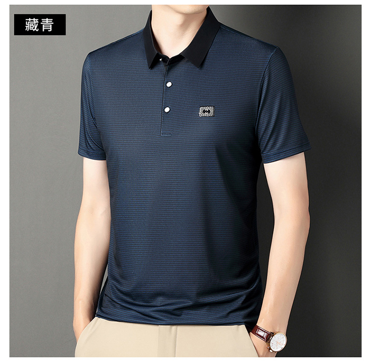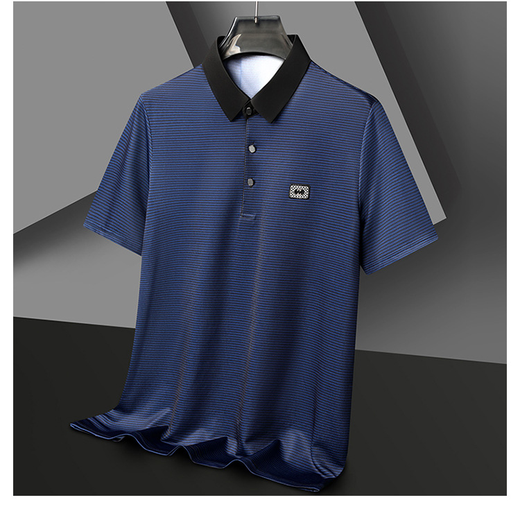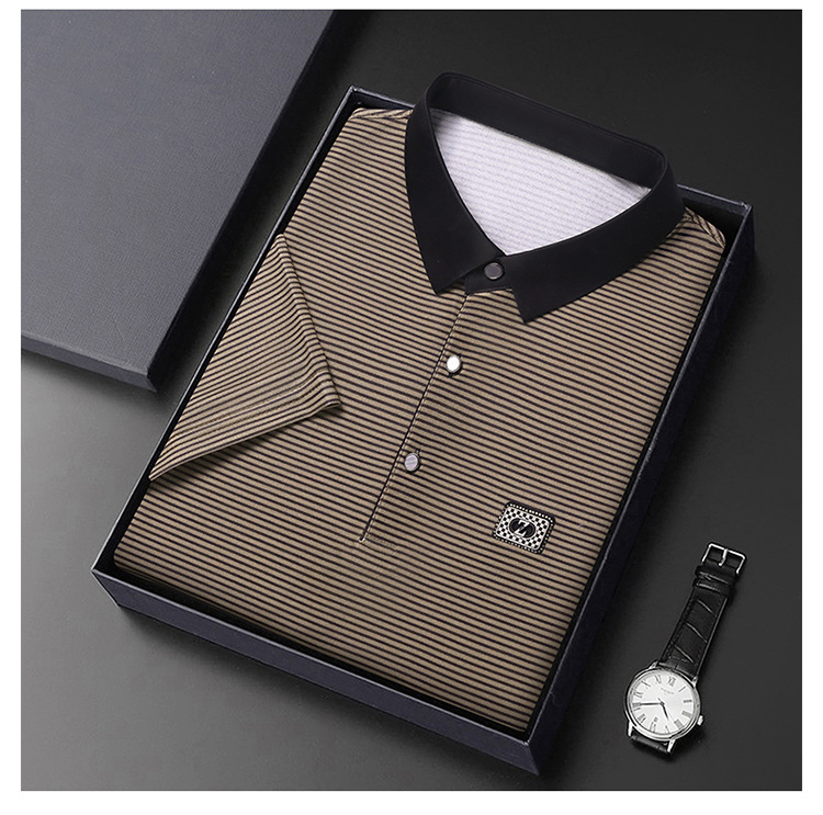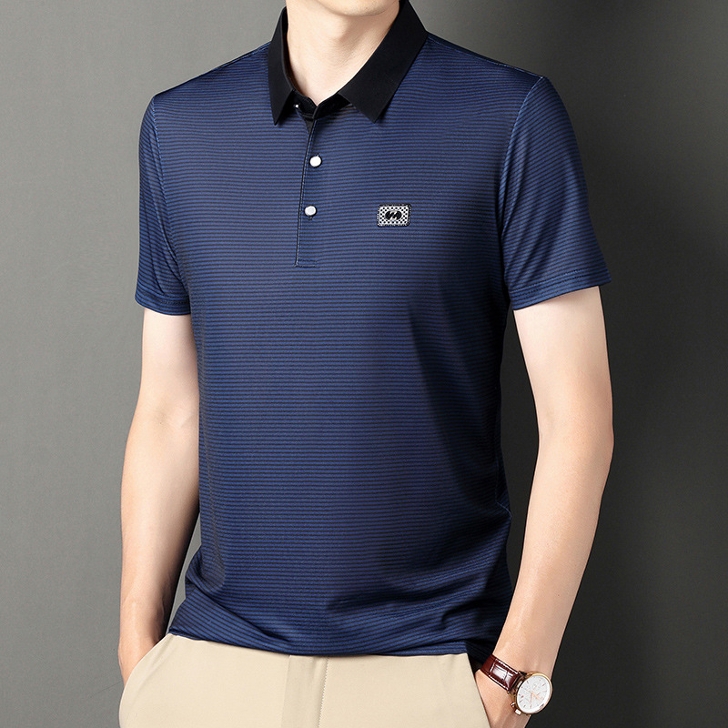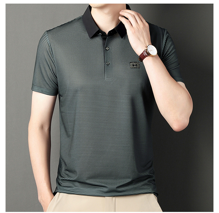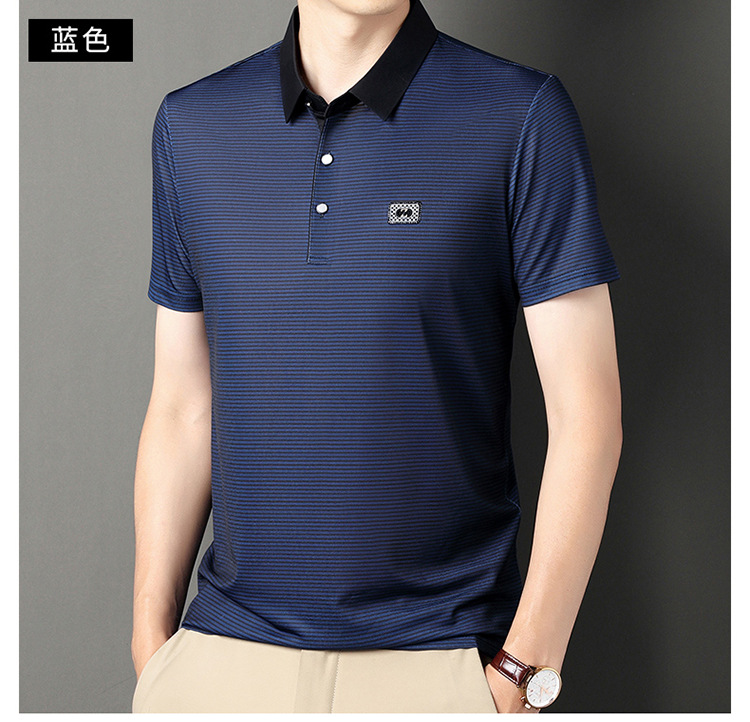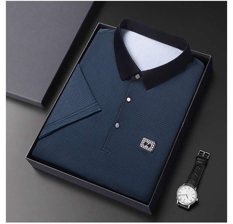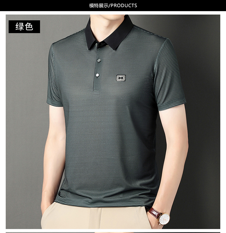 여름 폴로 셔츠 남자 반팔 옷깃 티셔츠 남자 패셔너블 올 매치 라인스톤 스트라이프 반소매 브랜드 남성복