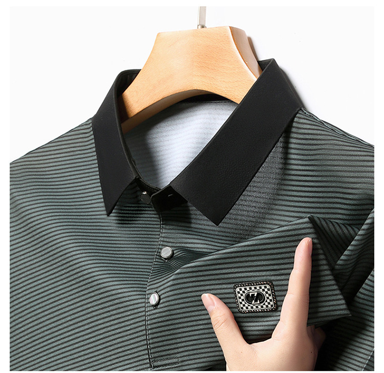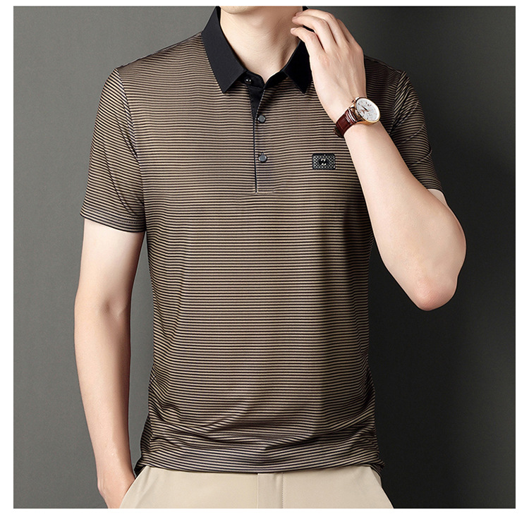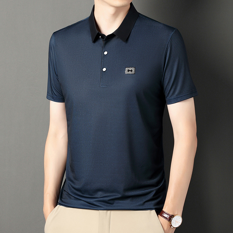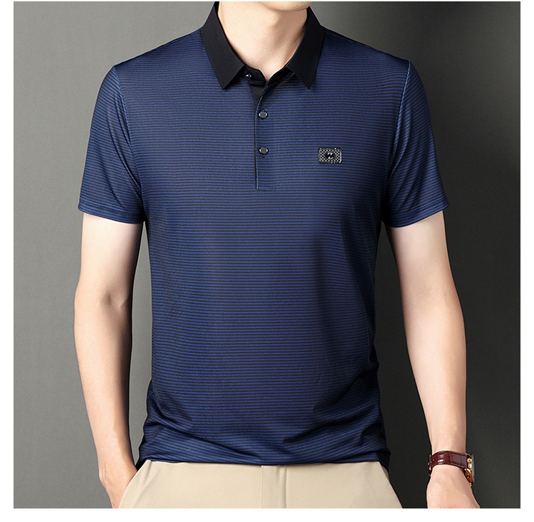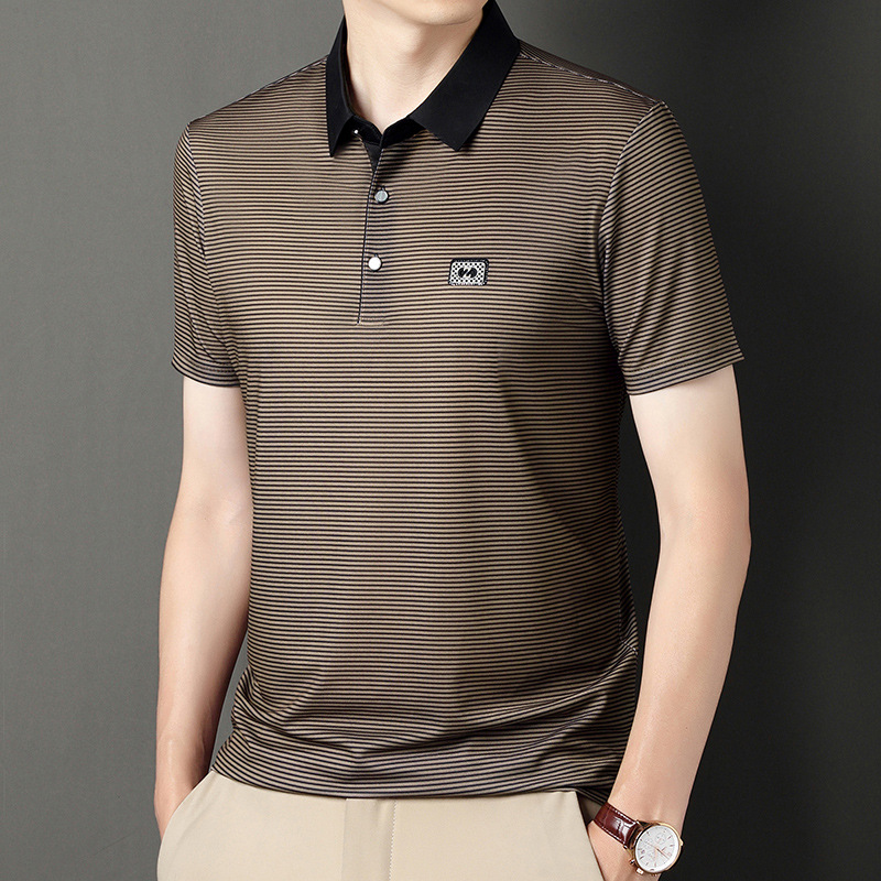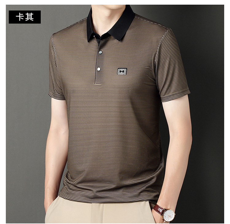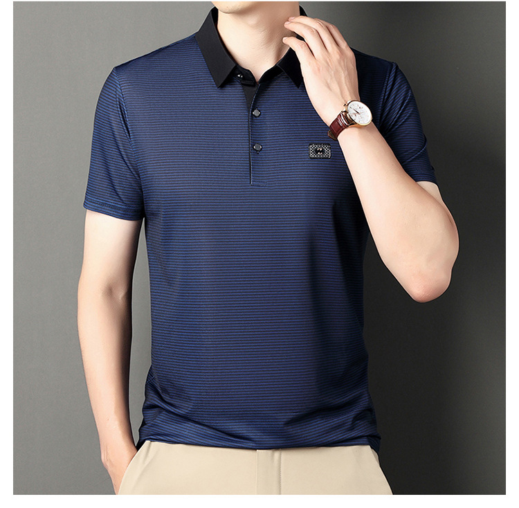 여름 폴로 셔츠 남자 반팔 옷깃 티셔츠 남자 패셔너블 올 매치 라인스톤 스트라이프 반소매 브랜드 남성복