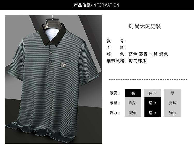 여름 폴로 셔츠 남자 반팔 옷깃 티셔츠 남자 패셔너블 올 매치 라인스톤 스트라이프 반소매 브랜드 남성복스토어 가기