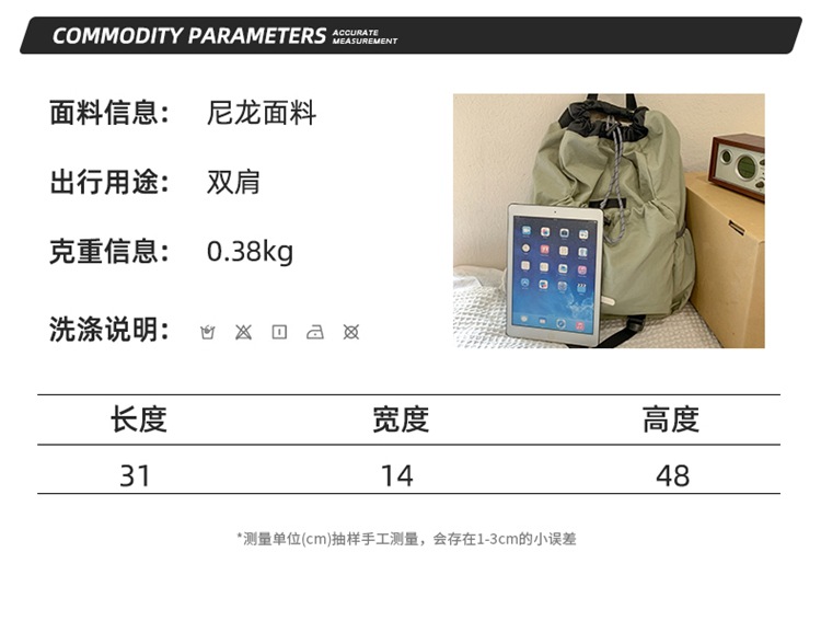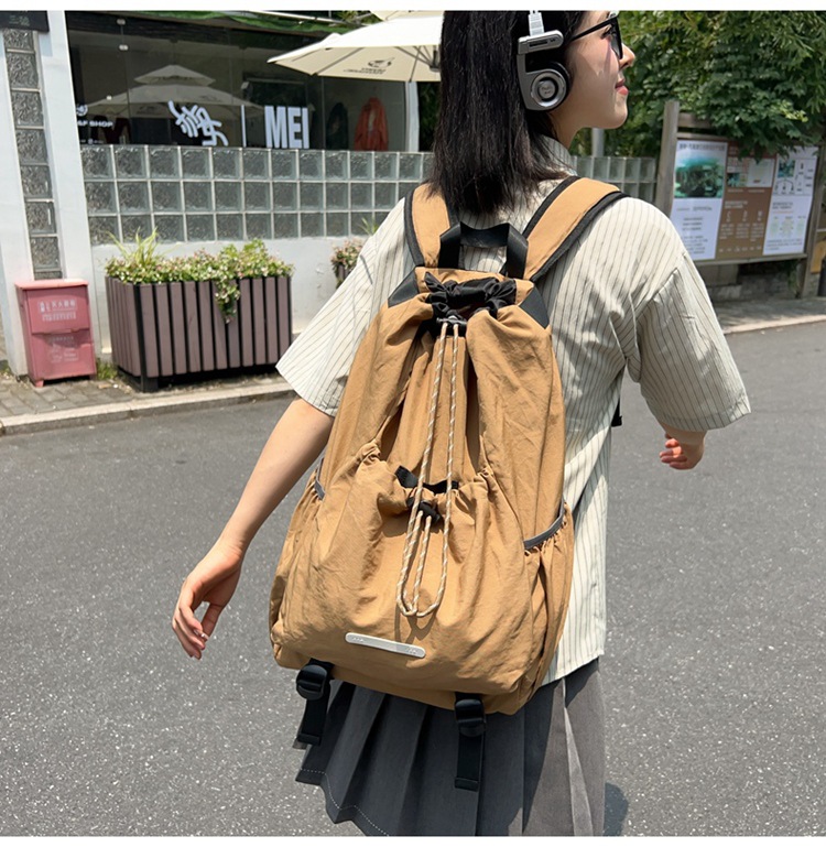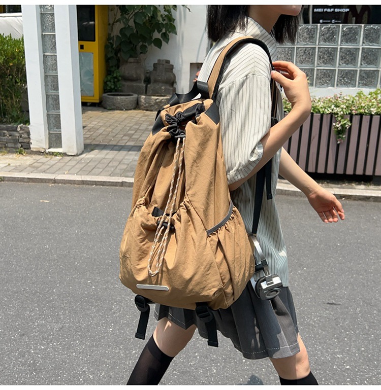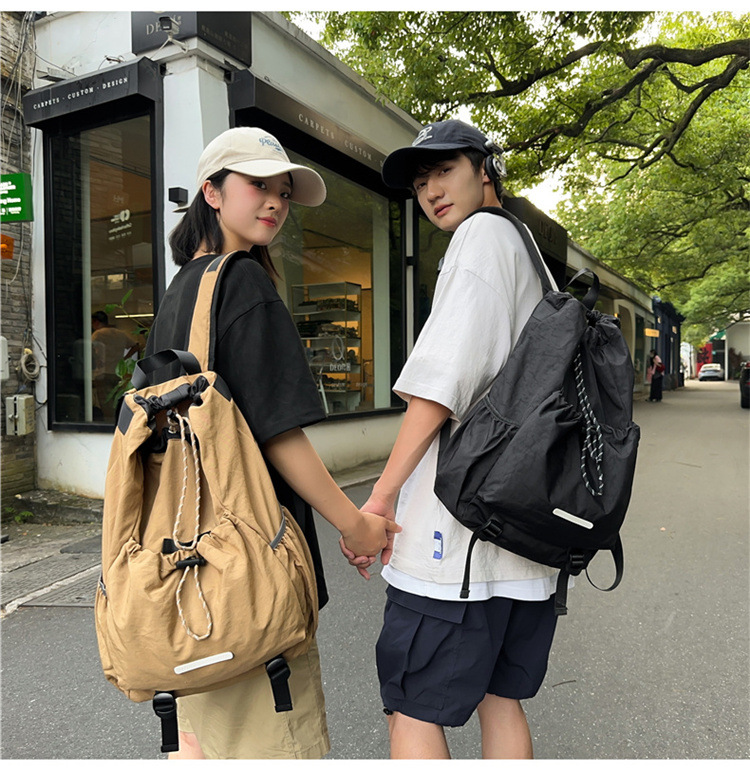 Drawstring Backpack 남자 2024 New Nylon Schoolbag Unisex College 스포츠 커플 여행 배낭