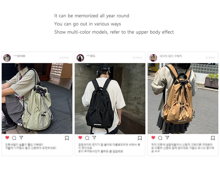 Drawstring Backpack 남자 2024 New Nylon Schoolbag Unisex College 스포츠 커플 여행 배낭스토어 가기