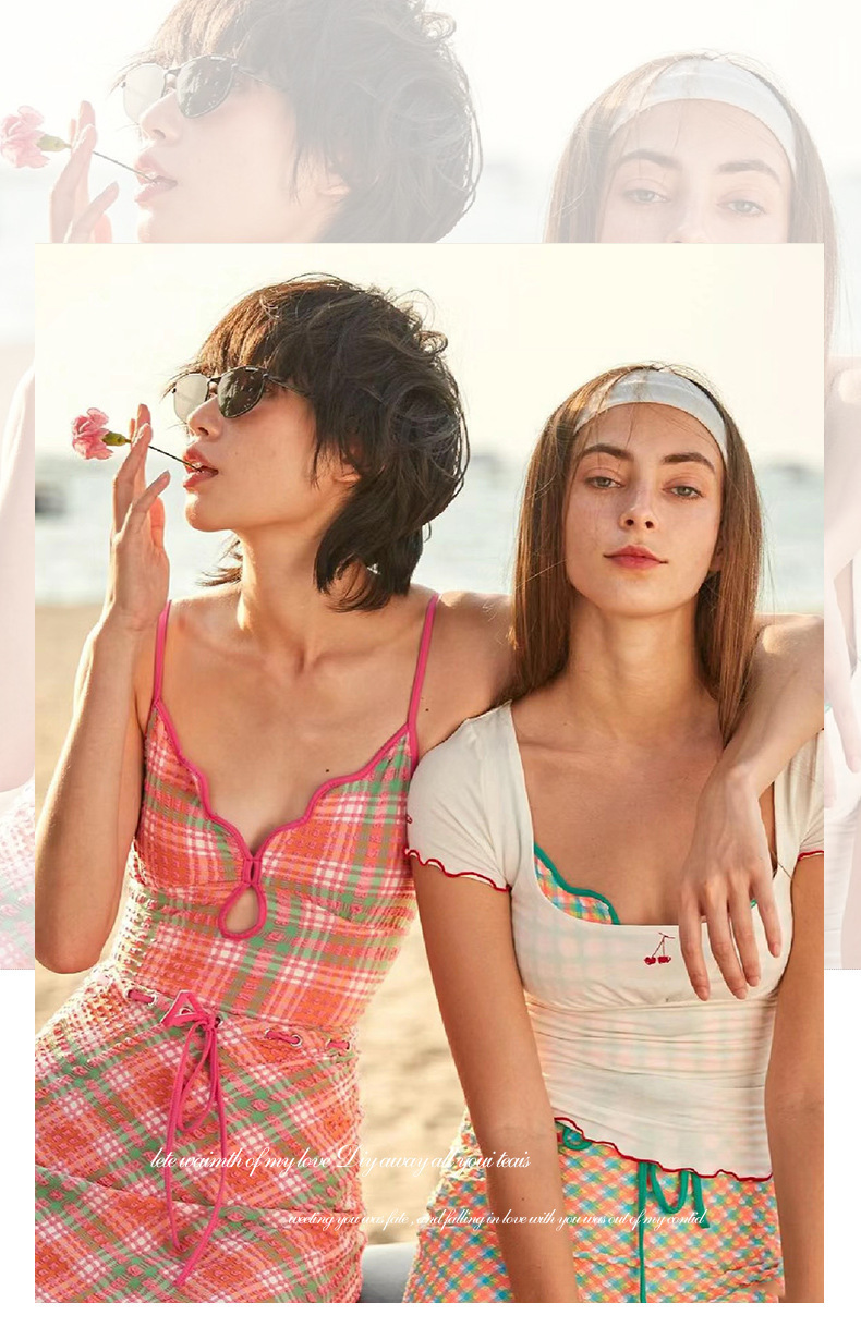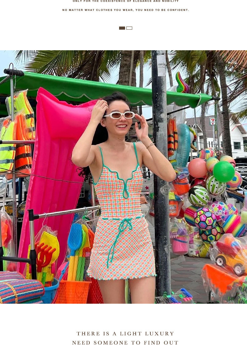 일본과 한국 스타일의 빈티지 체크 무늬 한국 인 원피스 수영복 여성용 2024 뉴 벨리 커버 슬림 수영복스토어 가기
