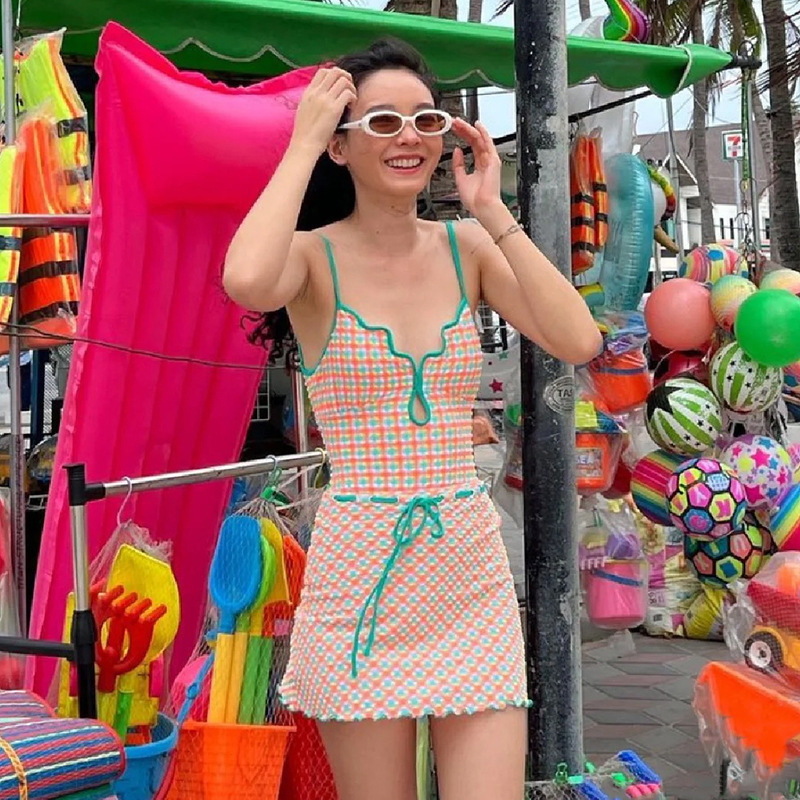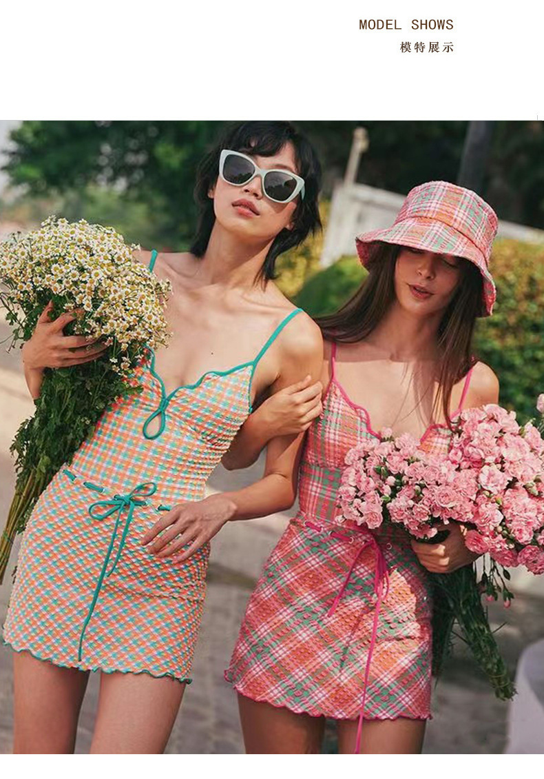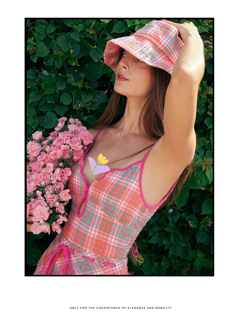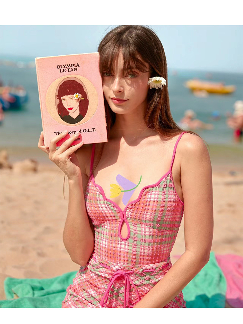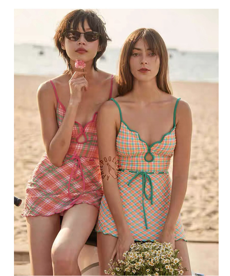일본과 한국 스타일의 빈티지 체크 무늬 한국 인 원피스 수영복 여성용 2024 뉴 벨리 커버 슬림 수영복