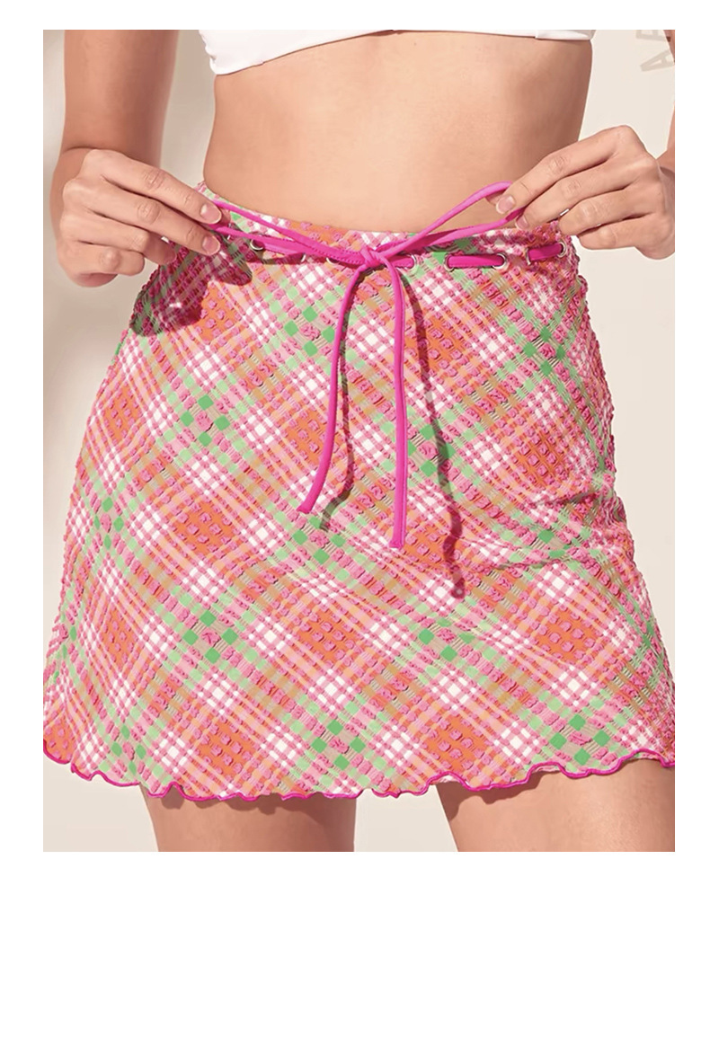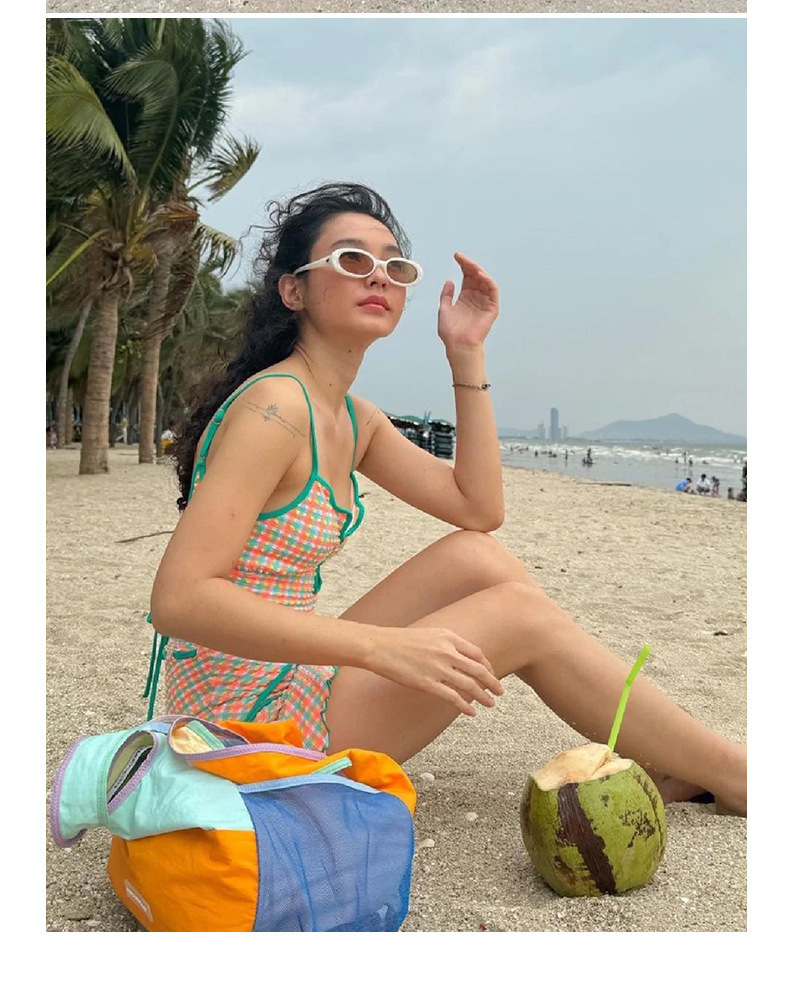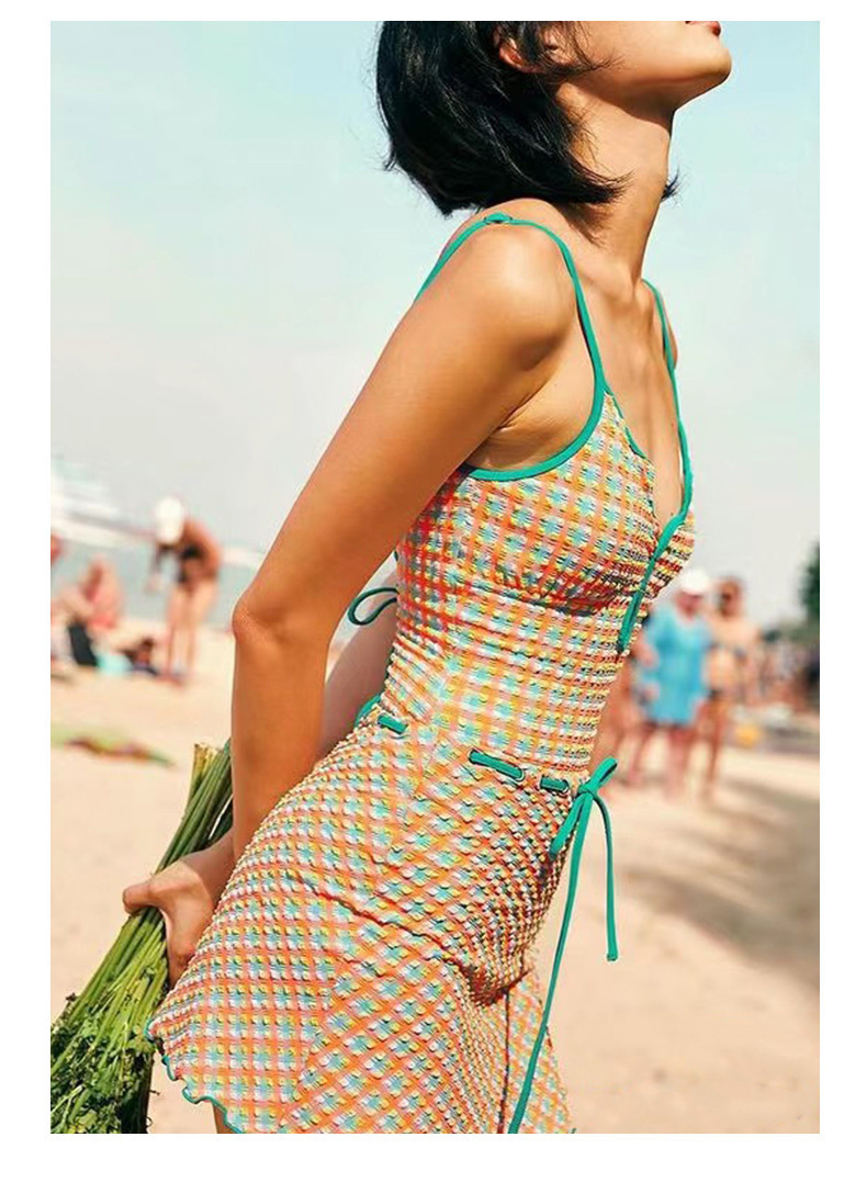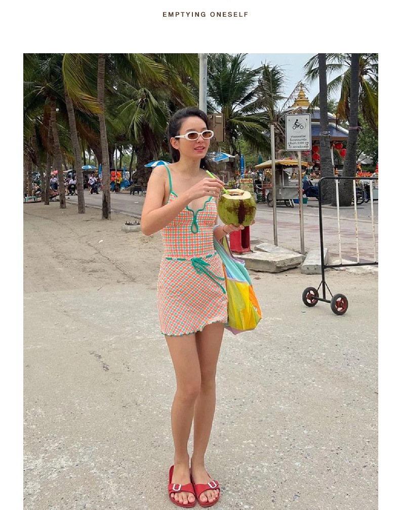 일본과 한국 스타일의 빈티지 체크 무늬 한국 인 원피스 수영복 여성용 2024 뉴 벨리 커버 슬림 수영복