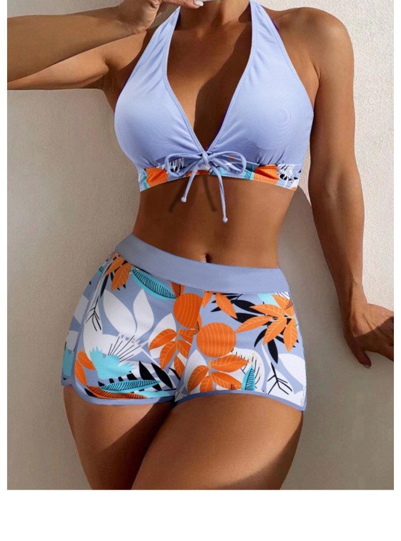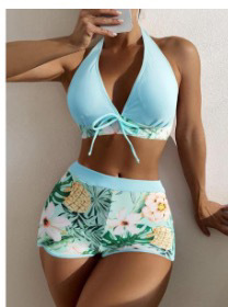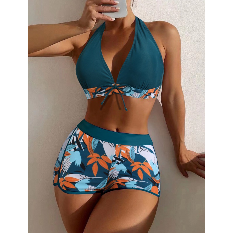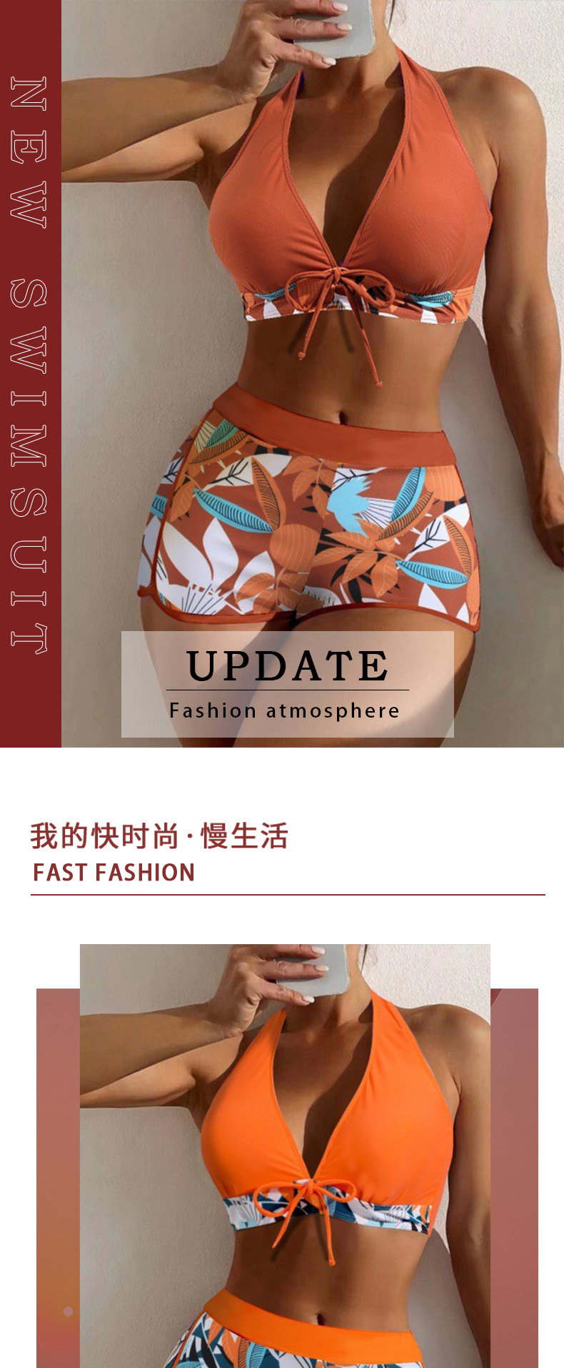 유럽과 미국의 고급 수영복 여성 대외 무역 분할 플랫 앵글 비키니 순수한 욕망 높은 허리 목 스트랩 아마존 수영복